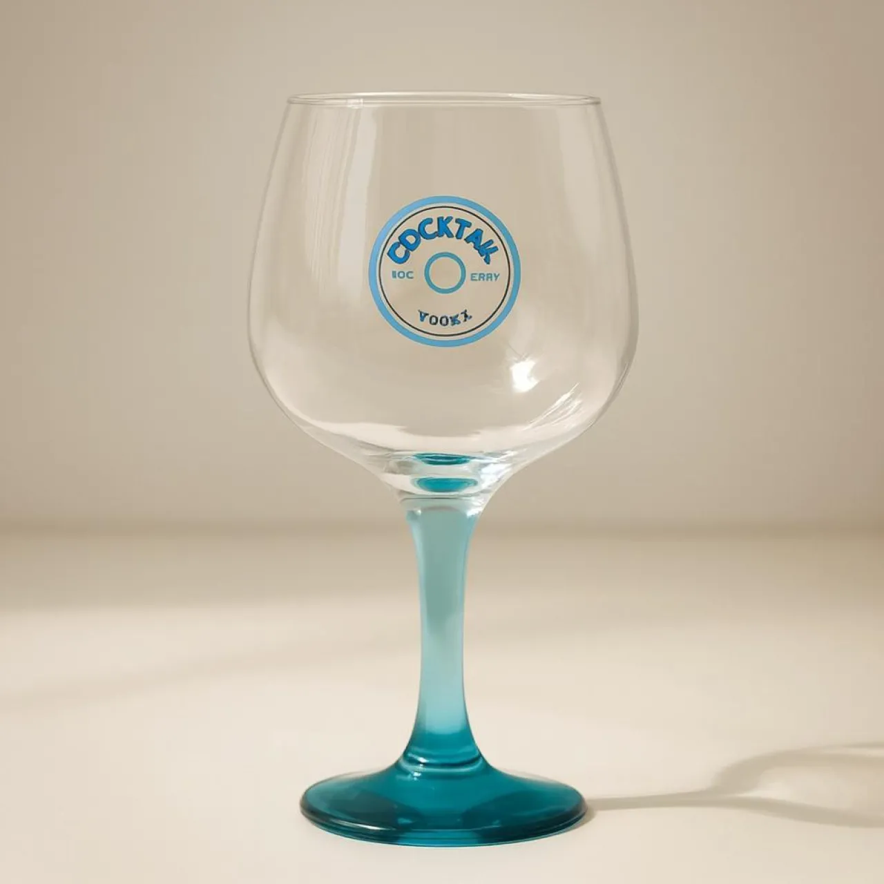 2 Verres À PiedCocktail 73Cl En VerreTransparent Pied Bleu