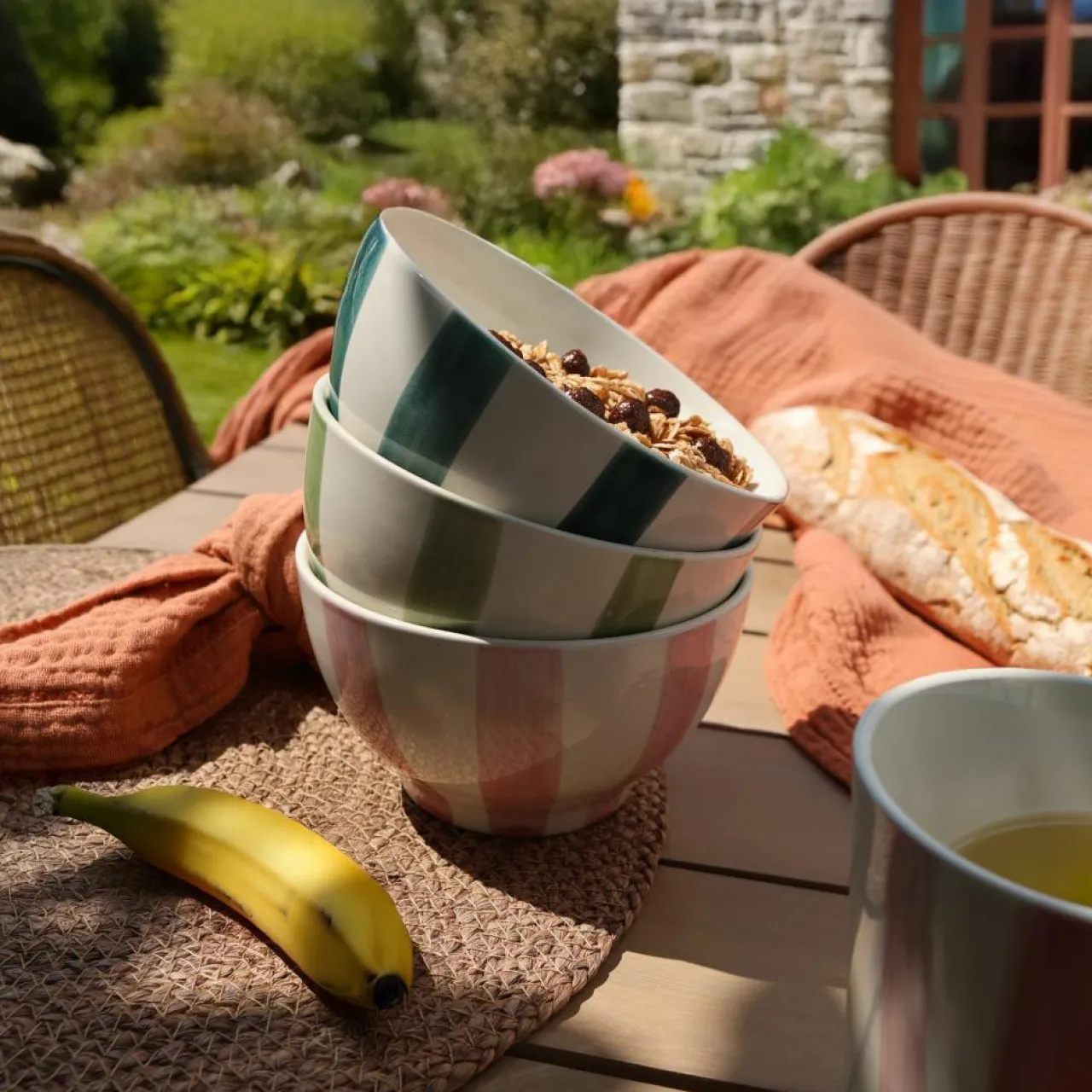 6 Bols Arlequin 70ClEn Grès Blanc RayuresCouleurs Assorties