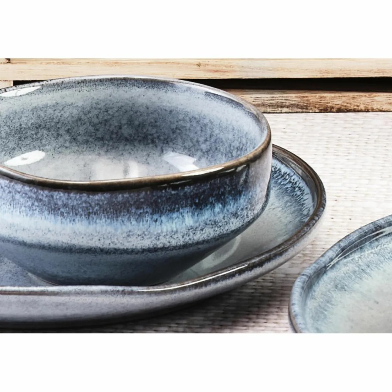 Les pièces de vaisselle sont ensuite recouvertes d’un émail d’une autre couleur pour faire ressortir l’effet réactif