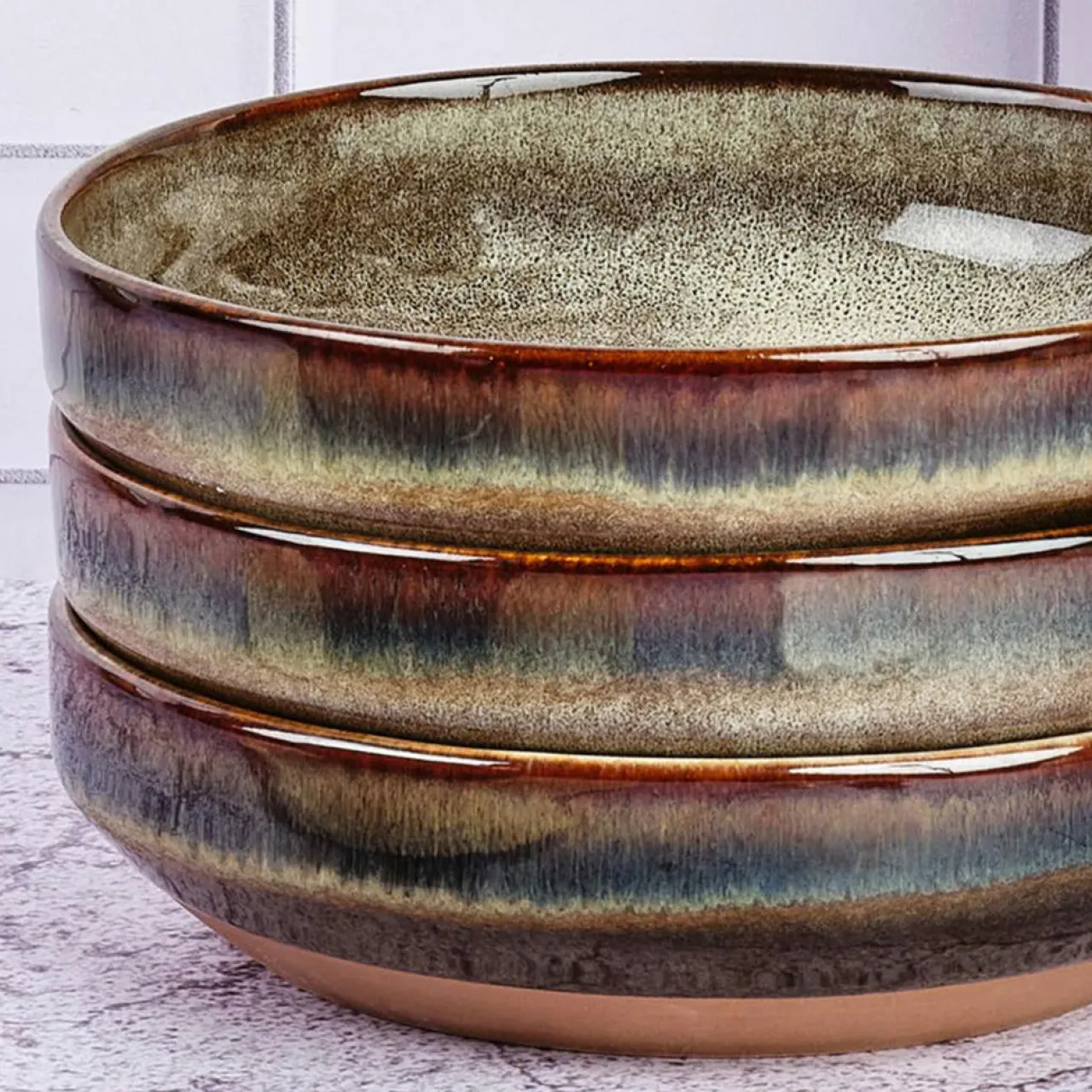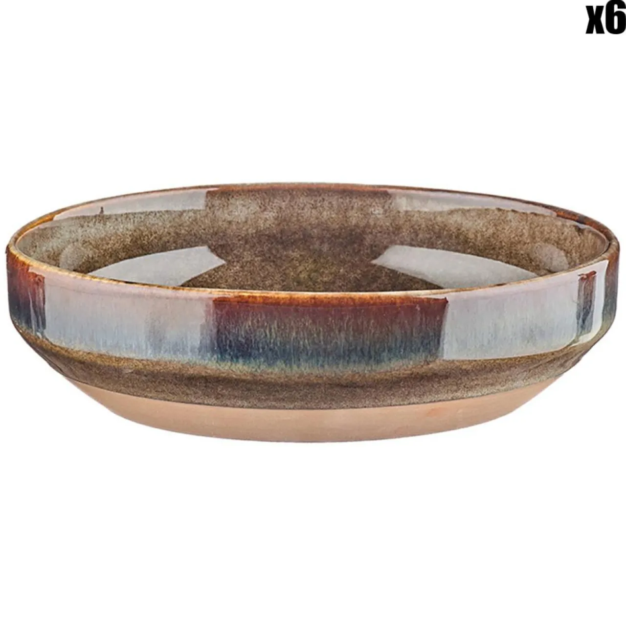 Après une première cuisson de l’argile à basse température, des émaux réactifs de couleurs différentes s’appliquent sur le grès et lui donnent un relief unique et éclatant. L’apparition de nuances de teintes que l’on retrouve d’une pièce à l’autre est le résultat d’un savant mélange artisanal des techniques de cuisson et du mode d’application de l’émail.