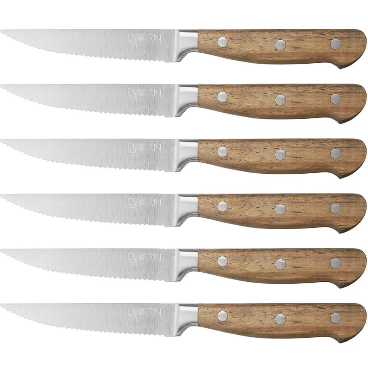 Le manche riveté dans la tradition est conçu avec du bois d’acacia responsable et permet aux couteaux d’être en harmonie avec tout type de table et de cuisine, de la plus classique à la plus moderne