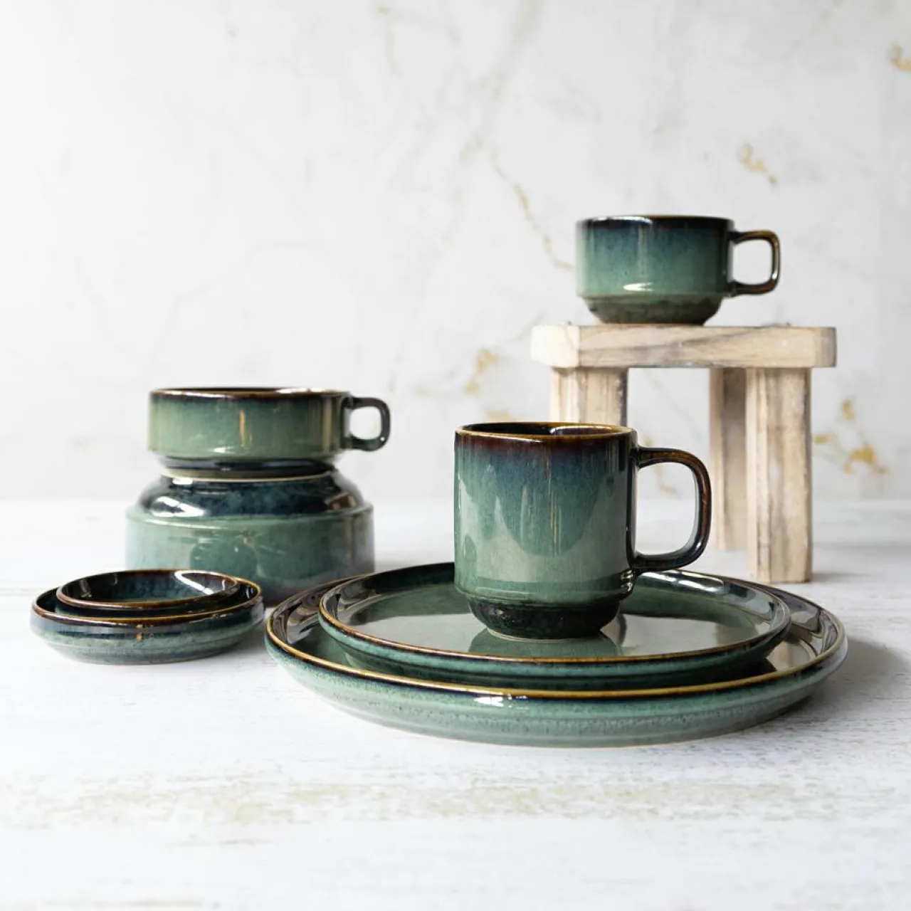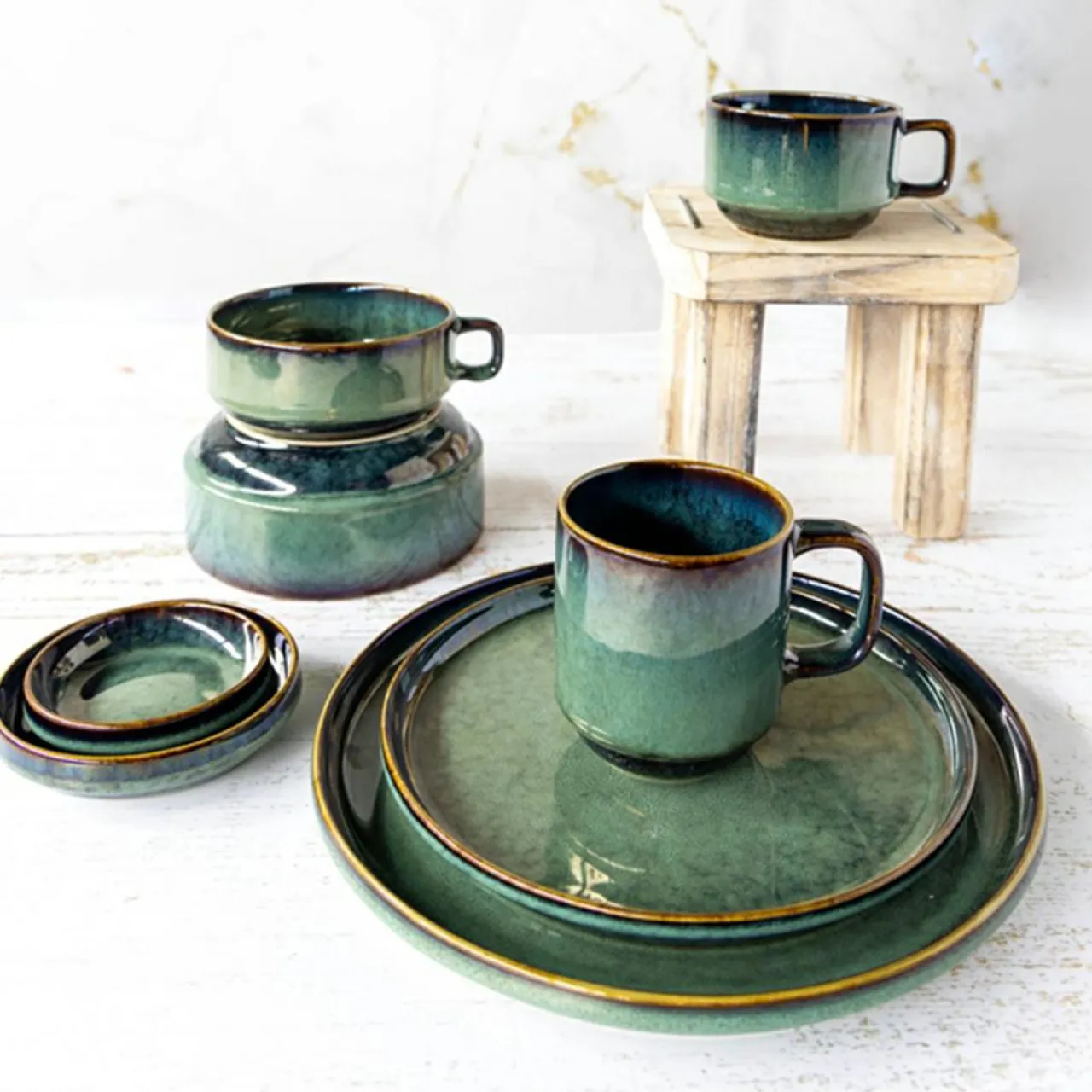 La vaisselle en grès Jade allie la beaute intemporelle des teintes vertes apaisantes à un design fonctionnel