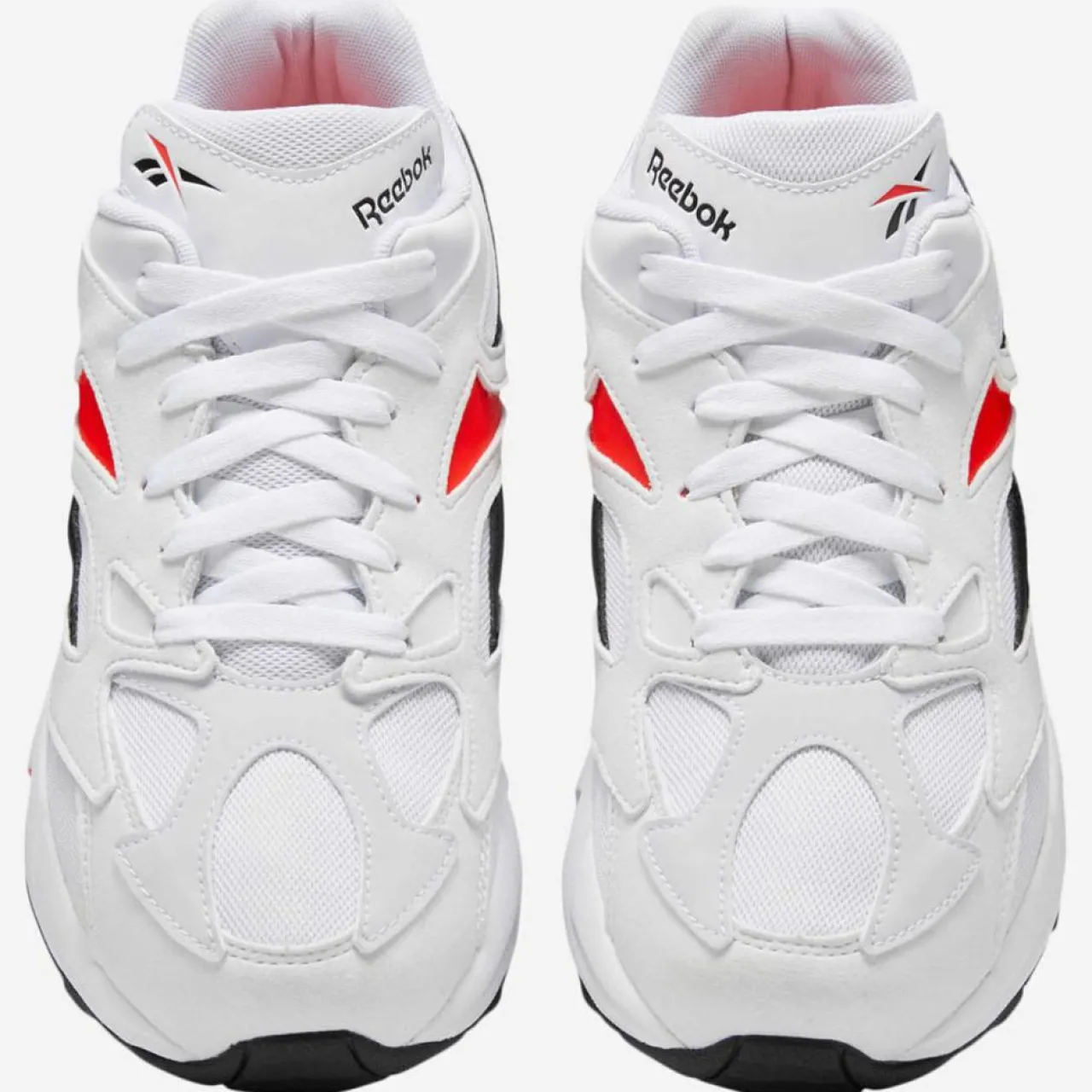 L’Aztrek 96 revisite la célèbre Aztrek dans un design plus géométrique avec encore plus d’empiècements. Composée d’un mélange de textile et de suède synthétique, cette chaussure affiche un style rétro authentique avec des courbes originales et un X à la pointe.