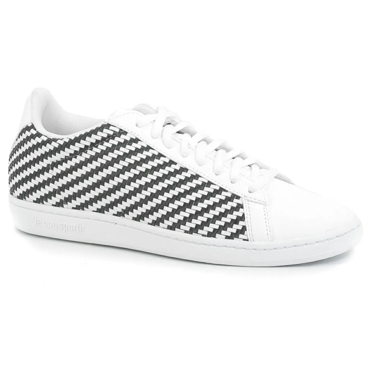 Baskets basses en effet cuir avec aspect tressé bicolore.