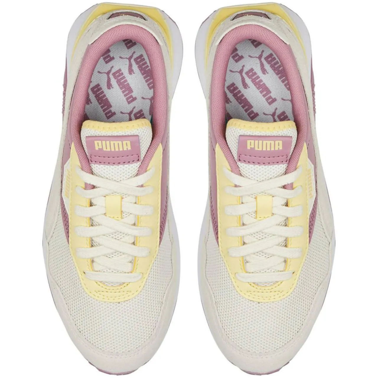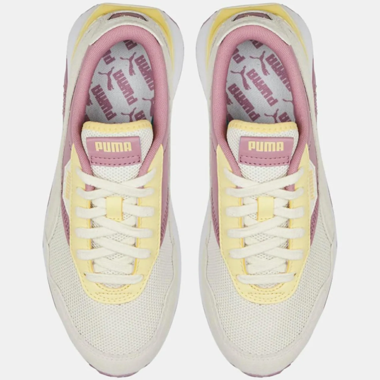 Ces baskets basses Puma séduisent par leur mélange de mesh et d’empiècements suédés.