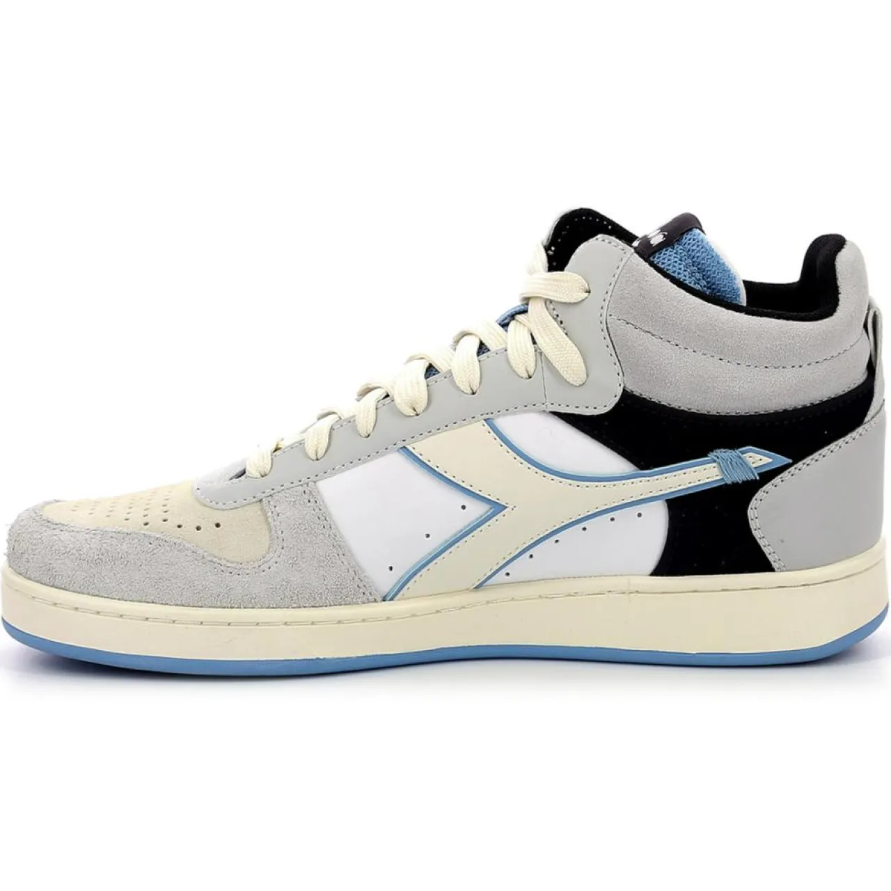 Sneaker iconique de l’univers diadora, la Magic provient directement de la section basket du catalogue de 1985. Née comme évolution de la MI Basket, avec une empeigne en cuir de veau, une semelle intérieure et une semelle intermédiaire en mousse anti-choc, avec une fermeture Velcro® spéciale dans la partie haute.