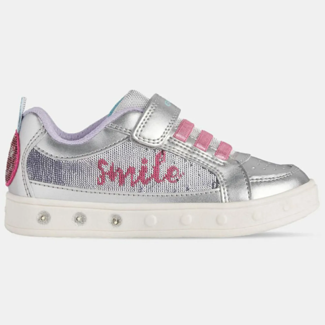 Ces baskets basses Geox présentent un bout rond, une fermeture lacets surmontée par un scratch, un tirant d’enfilage au dos et une inscription lettrée sur le côté.