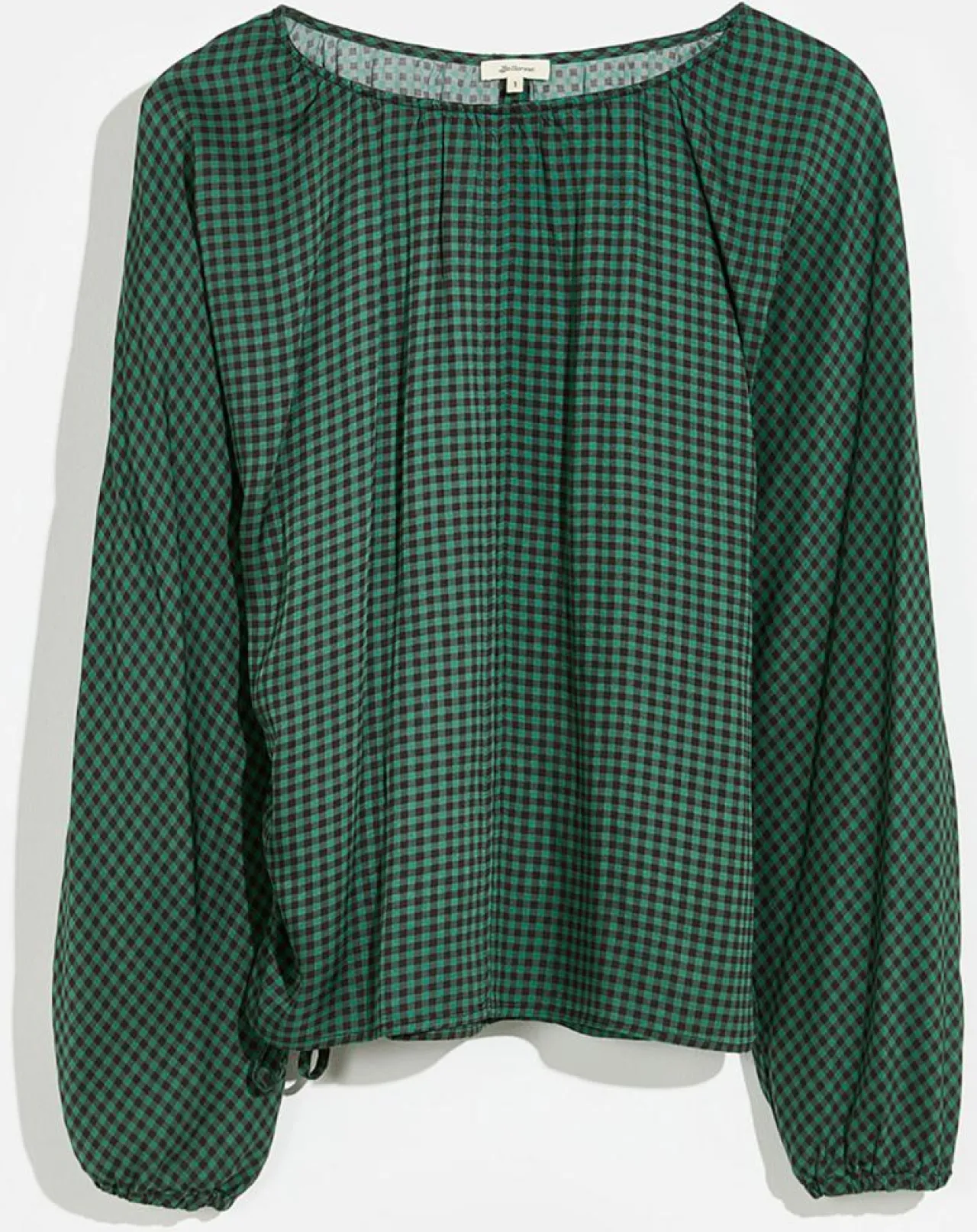 Elle arbore une coupe sobre avec des manches chauve-souris, des bords froncés et un lacet sur le côté pour ajuster le drapé à votre guise