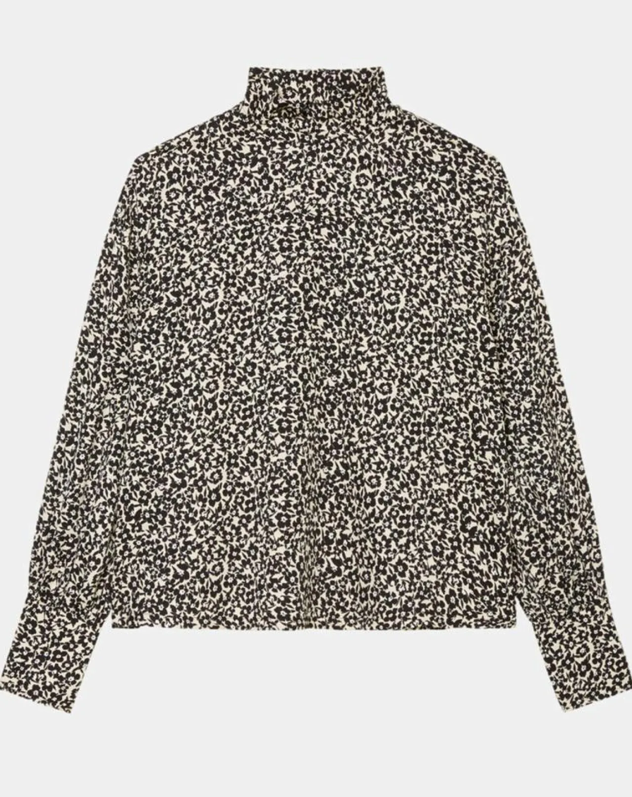 Optez pour un look casual, décontracté et sans chichis en associant ce chemisier imprimé en pur twill de viscose fluide de qualité supérieure à un pantalon slim et à un cardigan en maille.