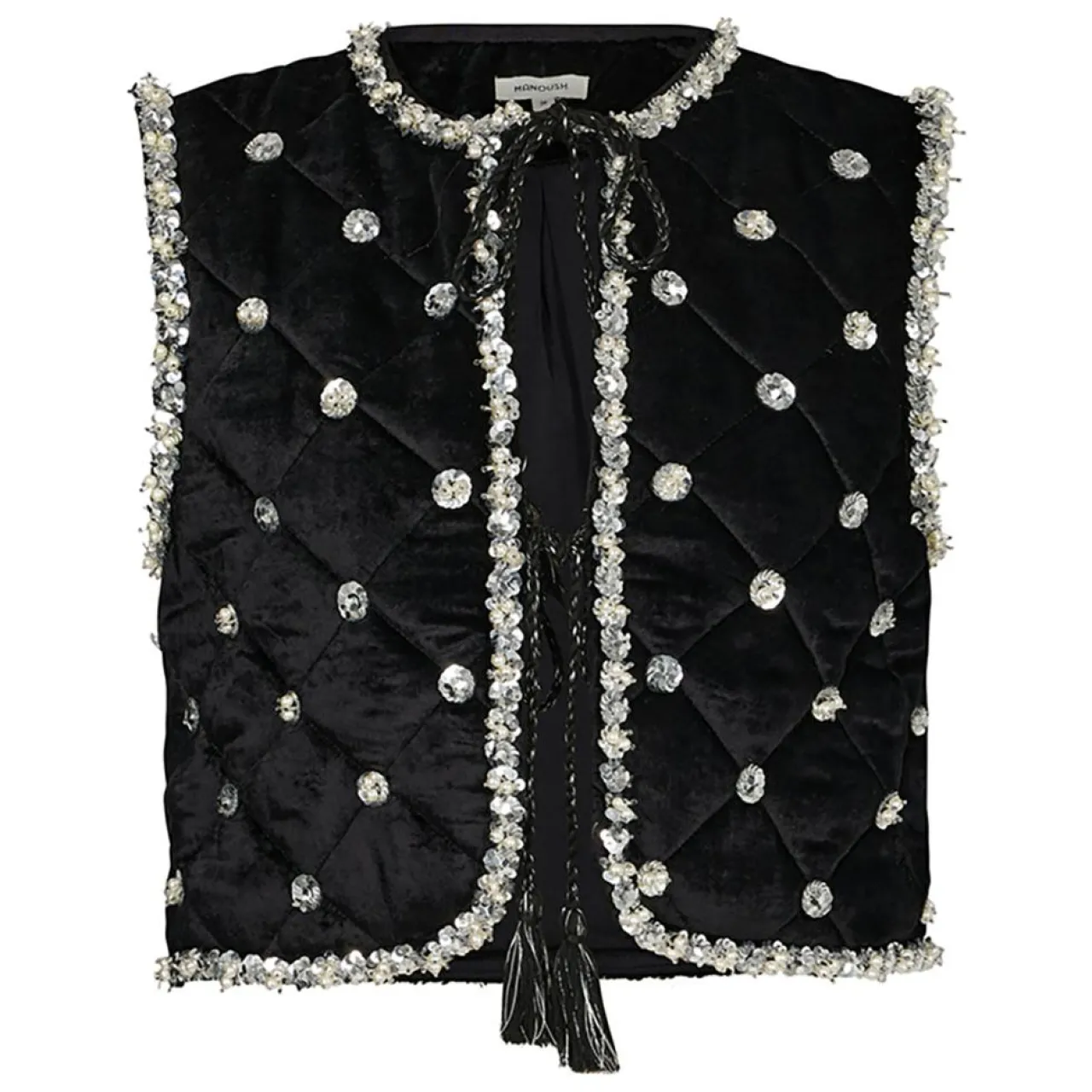 Perles et sequins brodés sur l’ensemble et sur les bords.Entièrement doublée
