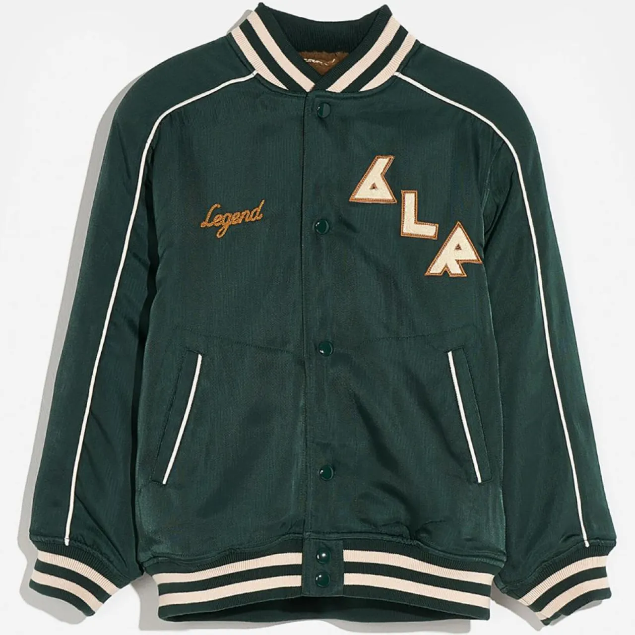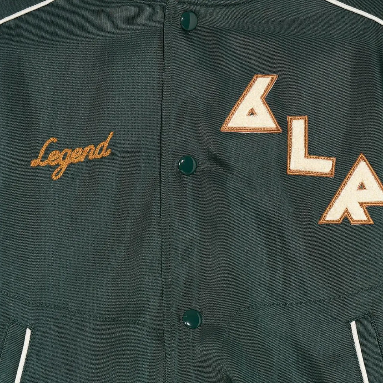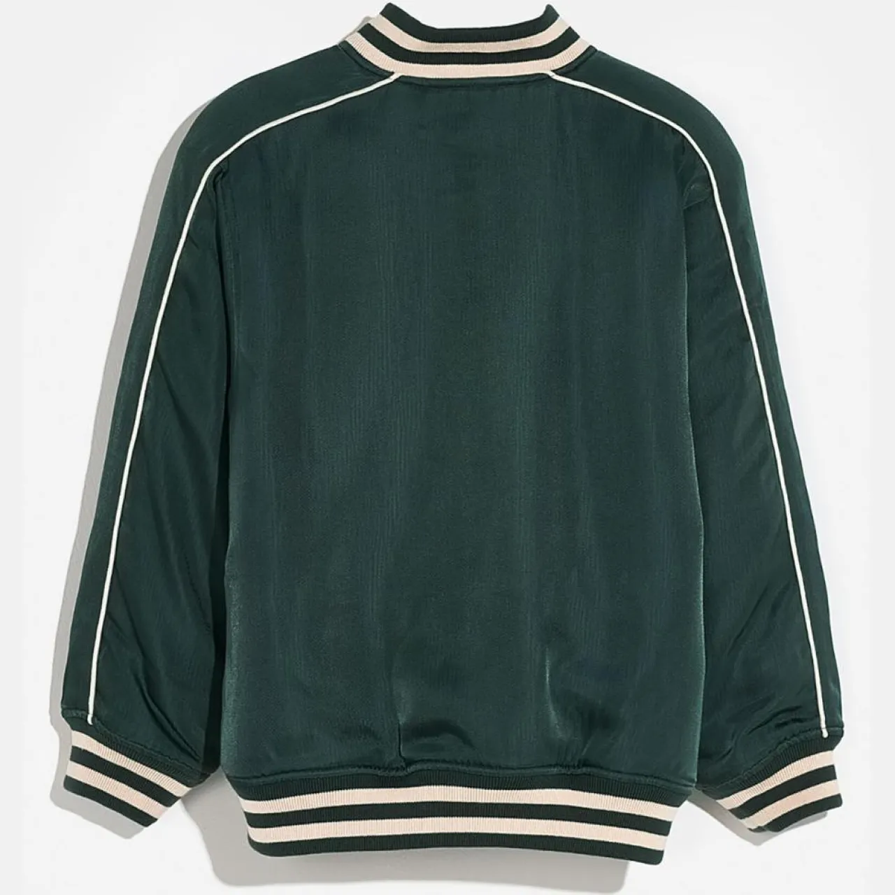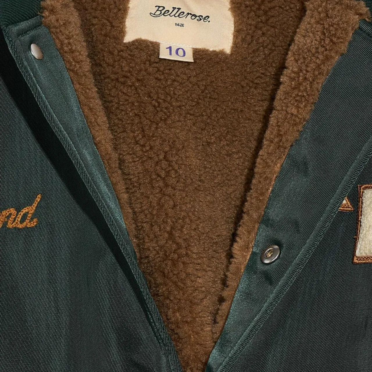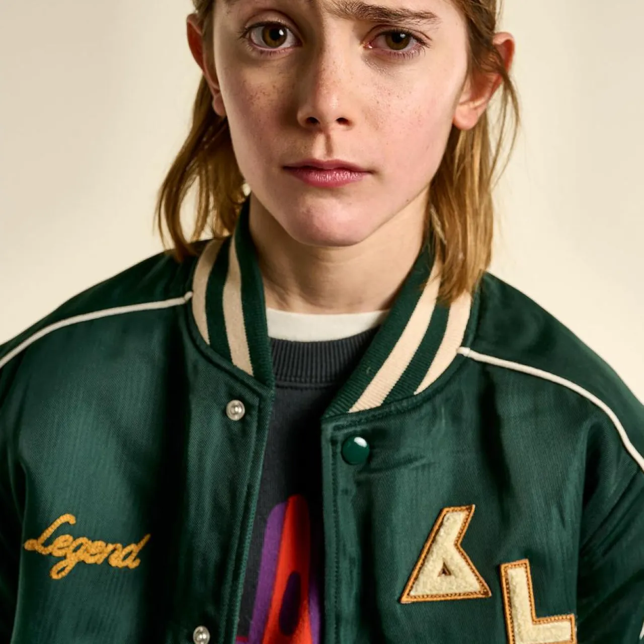 Mention spéciale pour la veste universitaire Bellerose ! Sergé de satin vert botanique, Hugho est un modèle oversize et unisexe pour une dégaine d’élite