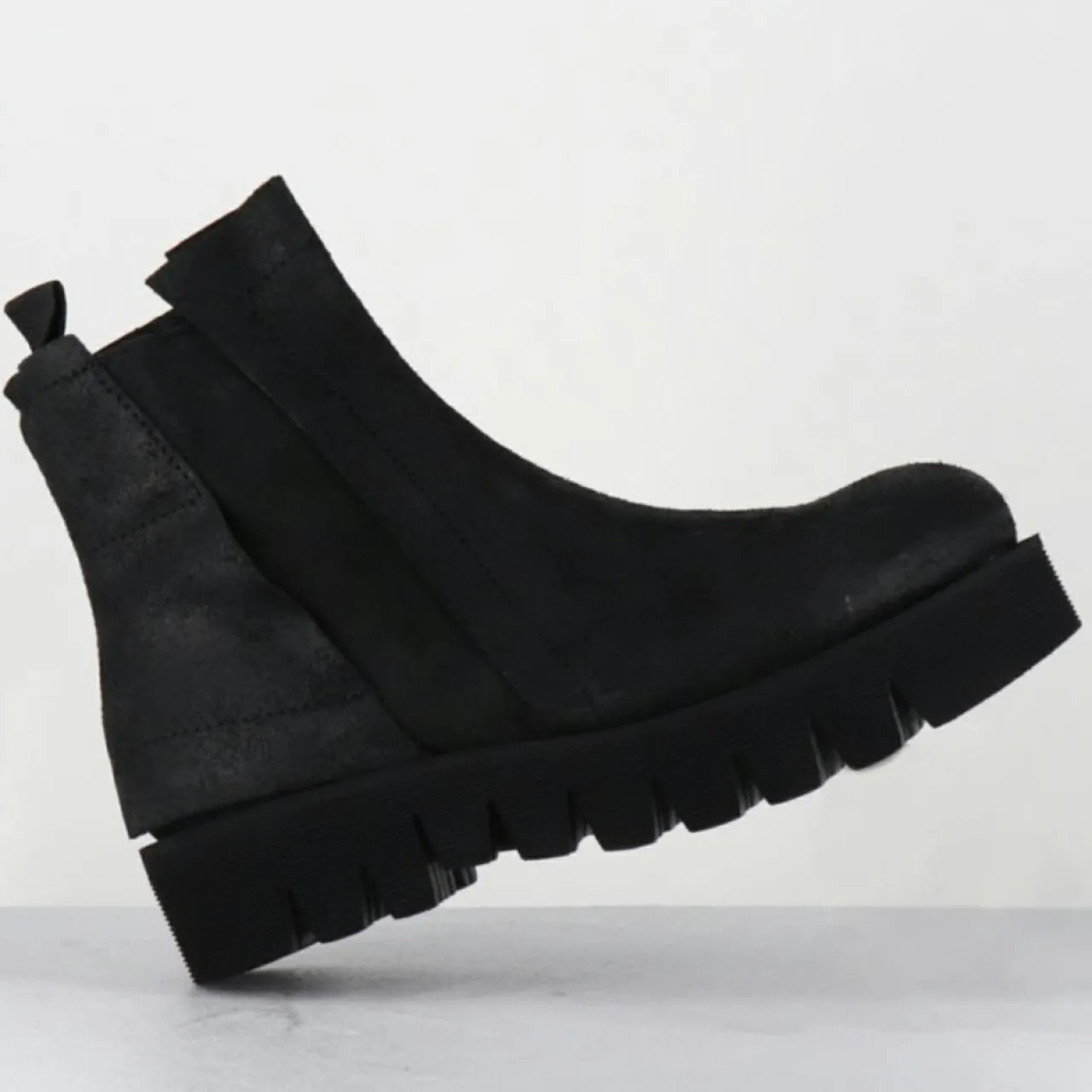 Boots courtes en cuir nubuck huilé et brossé pour un effet vieilli