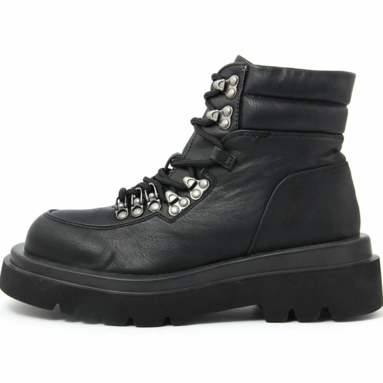 Bottine Amphibie Semelle Épaisse Lacets Détails Lacets Bout Arrondi Talon Carré Tige Matelassée