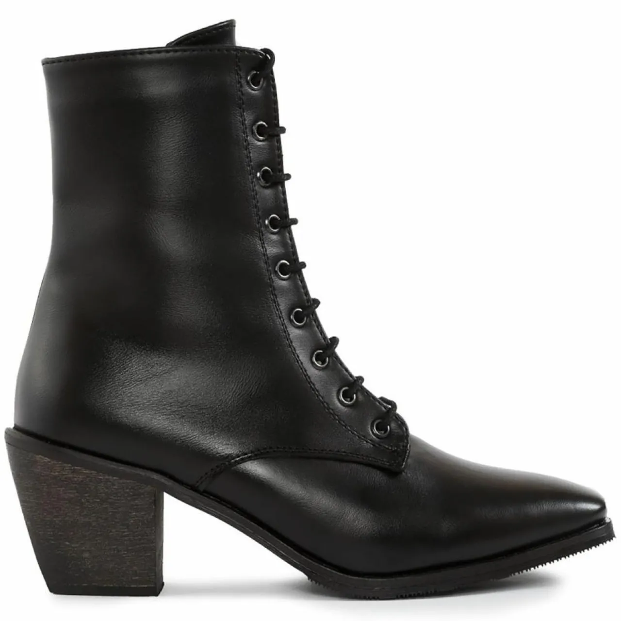 Bottine Noire Lacets Fermeture Éclair Côté Bout Carré