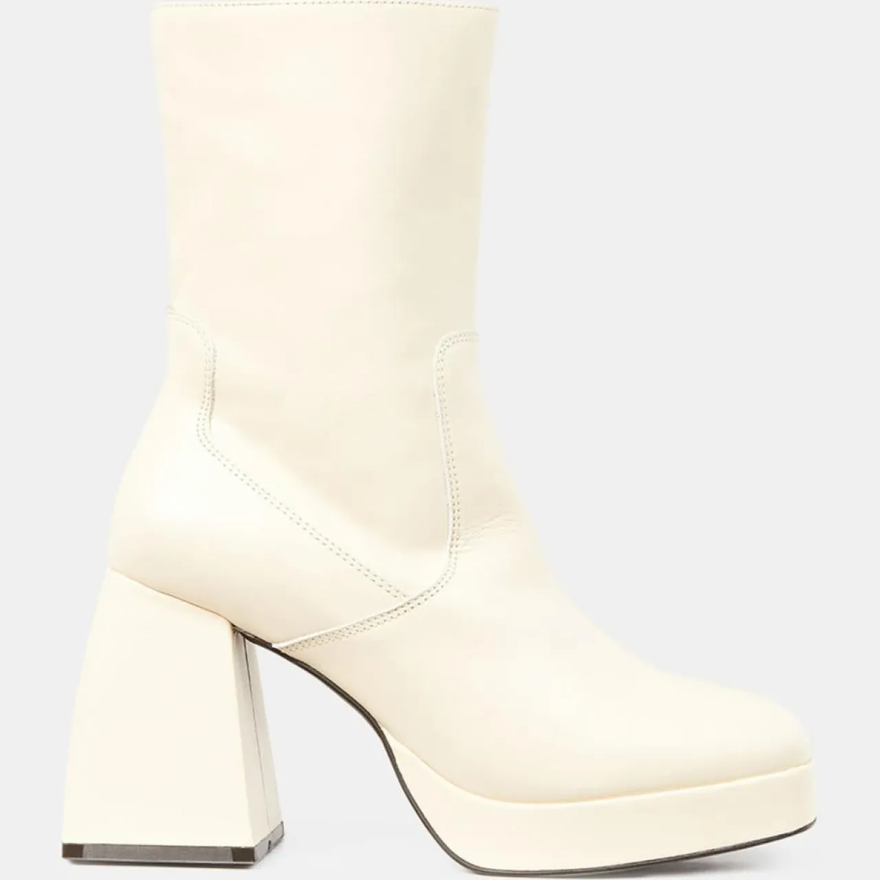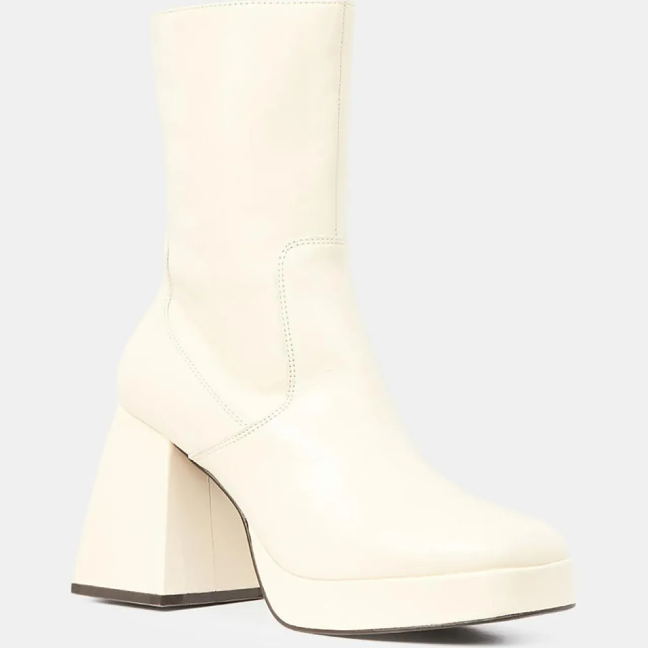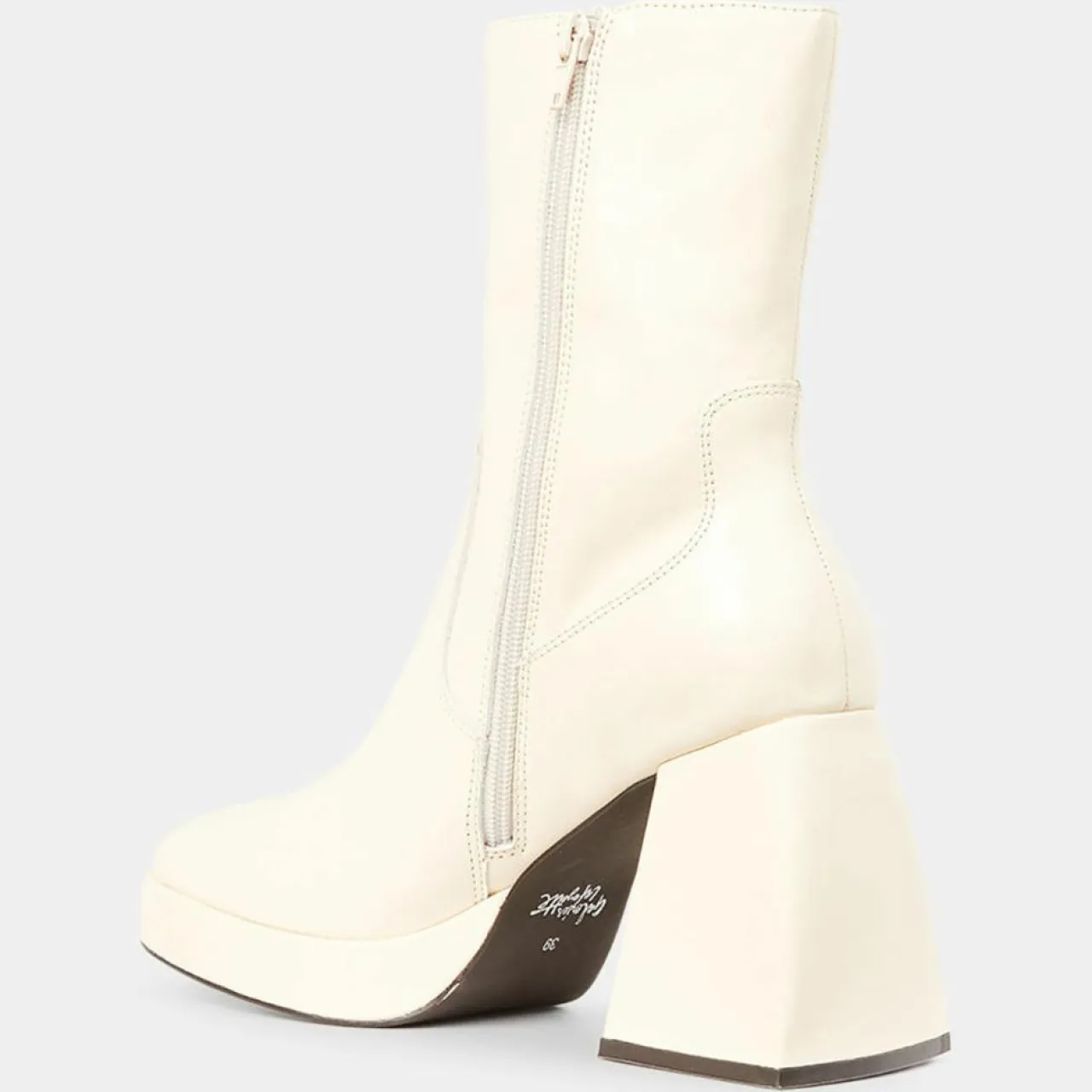 Ces bottines Galeries Lafayette en cuir de vachette craquelé LWG issues d’une tannerie Leather Working Group Gold sont munies d’un bout carré, d’une fermeture zippée et d’un talon flare.