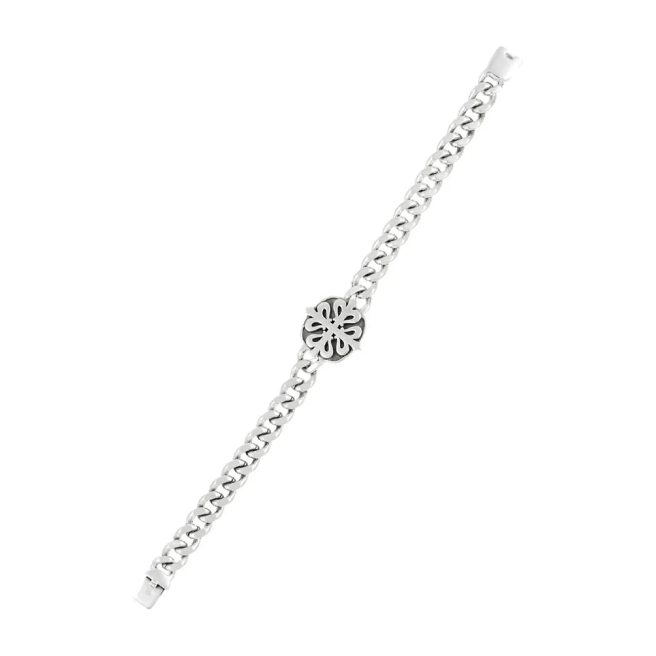 Bracelet chaîne en argent massif orné d’une croix de style baroque
