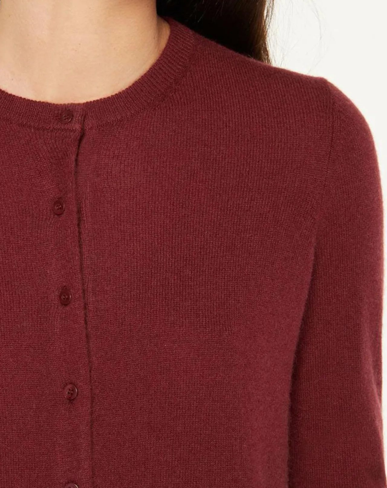 Ce gilet droit Galeries Lafayette en cachemire se pare d’un col rond, de manches longues, d’une fermeture boutonnée et de finitions côtelées.