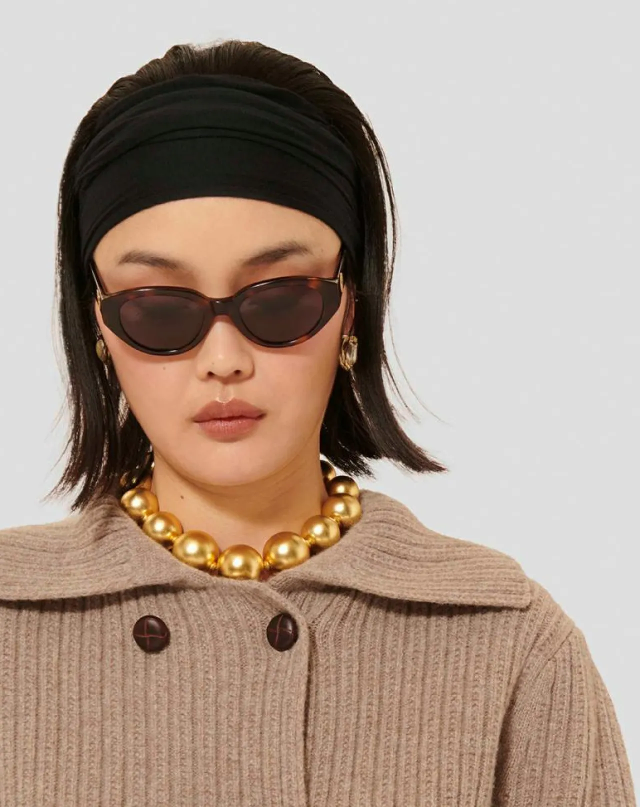 Ce pull en laine couleur noisette possède un col camionneur et des manches longues