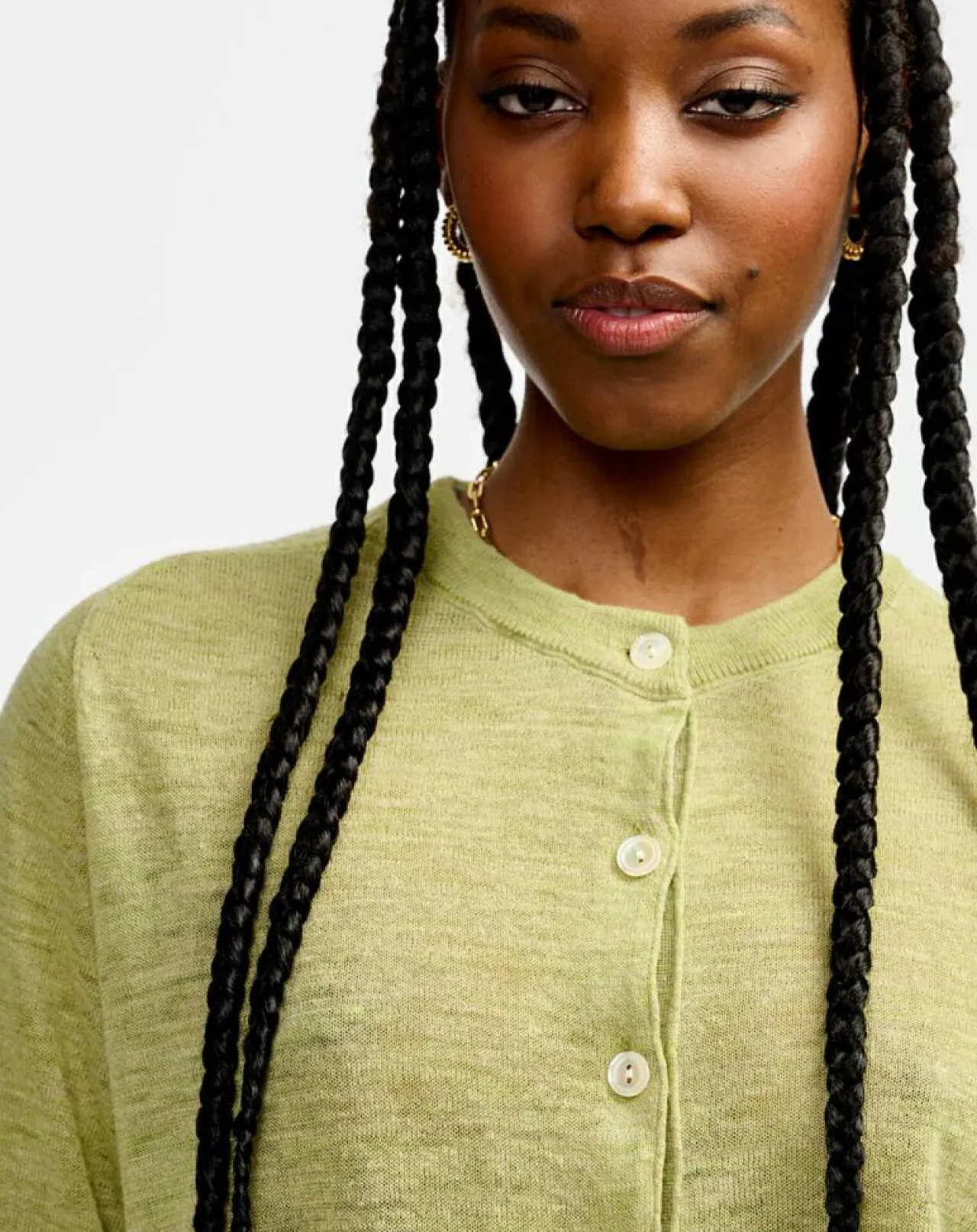 L’indémodable cardigan que l’on chérit année après année. Neeta a fière allure avec ses manches raglan, son col rond, ses boutons en nacre et ses détails ajourés aux épaules. Confectionné en lin mélangé, c’est une bonne option pour vos vacances d’été.