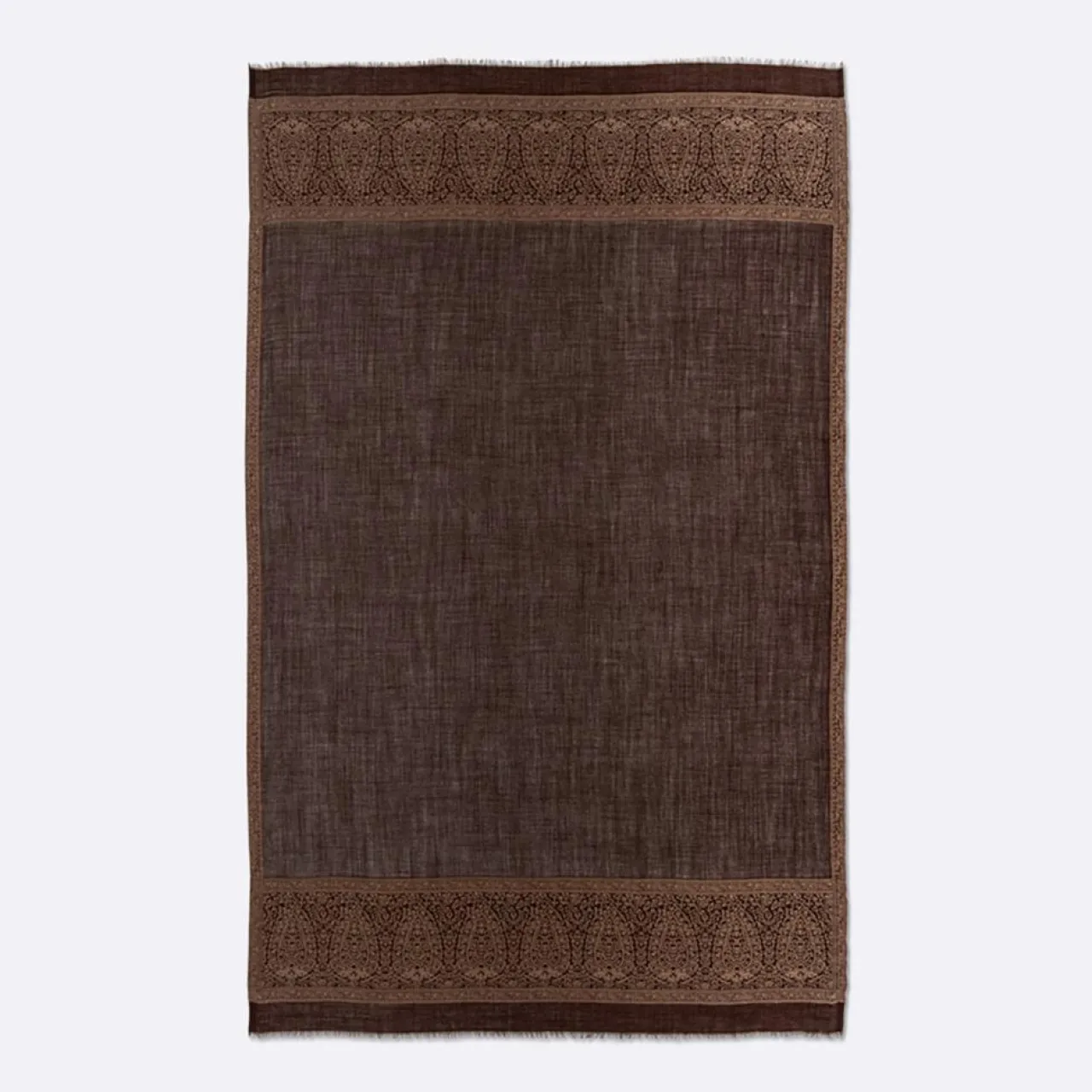 Grande étole légère et enveloppante, son tissage jacquard est inspiré d’un cachemire ancien de la collection privée de la Maison Petrusse
