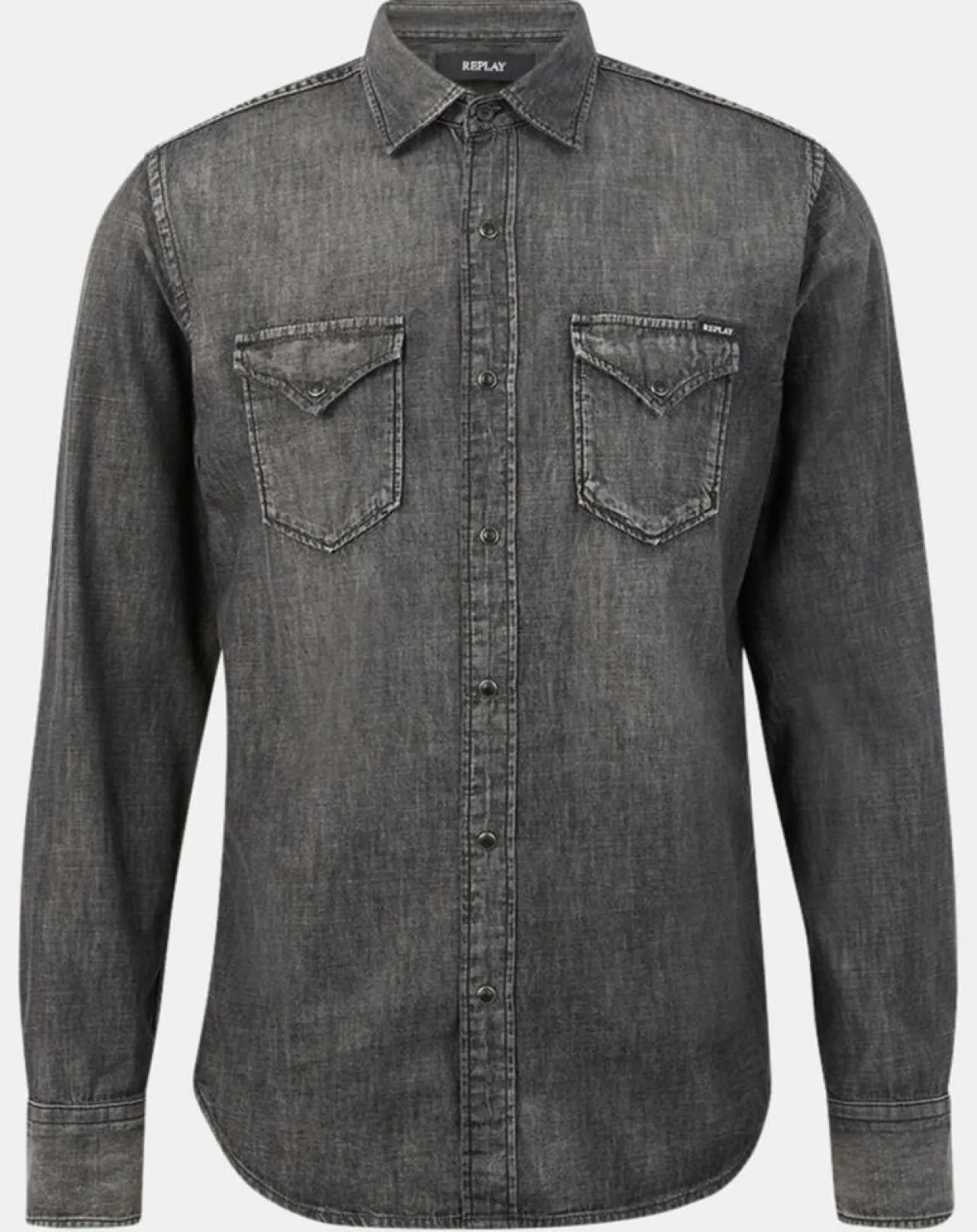 Cette chemise ajustée Replay est composée de coton et de chanvre façon denim