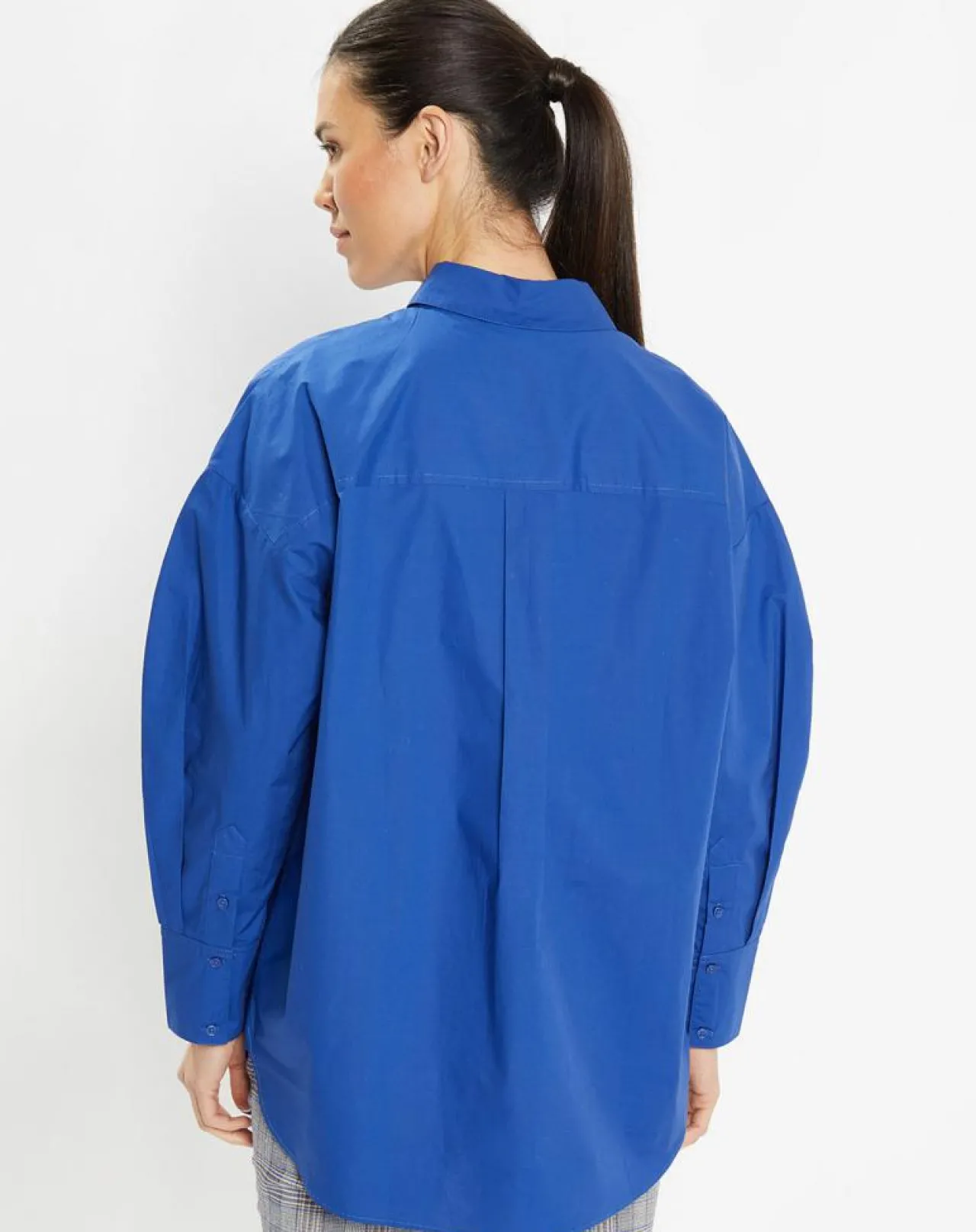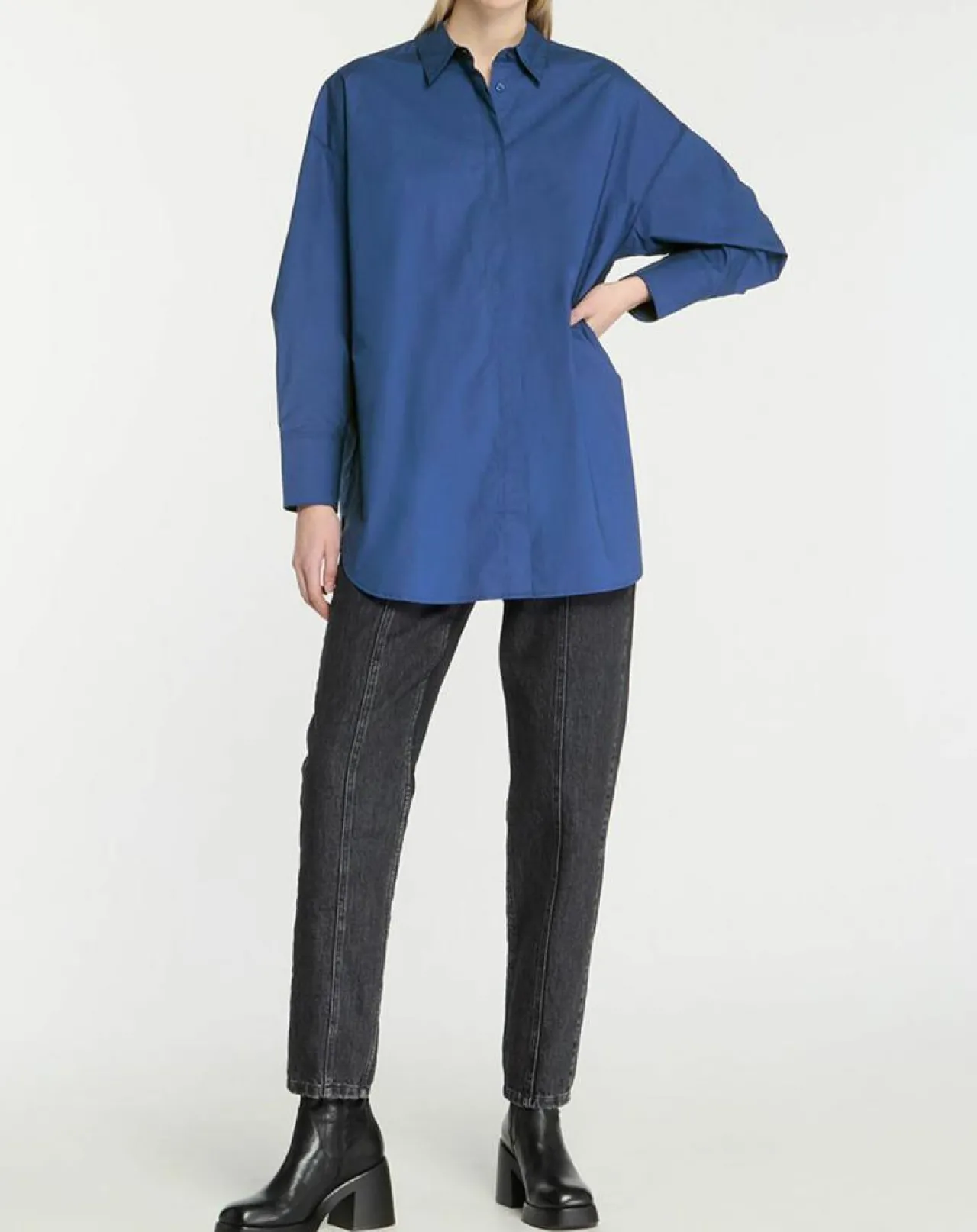 Cette chemise longue et ample Galeries Lafayette en coton est munie d’un col en pointe, d’une fermeture boutonnée sous patte et d’une base arrondie.