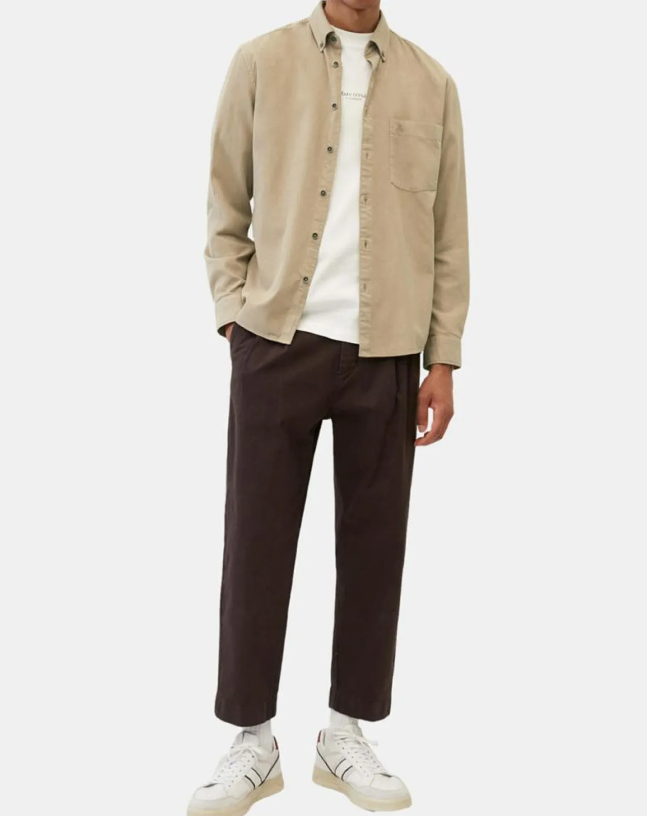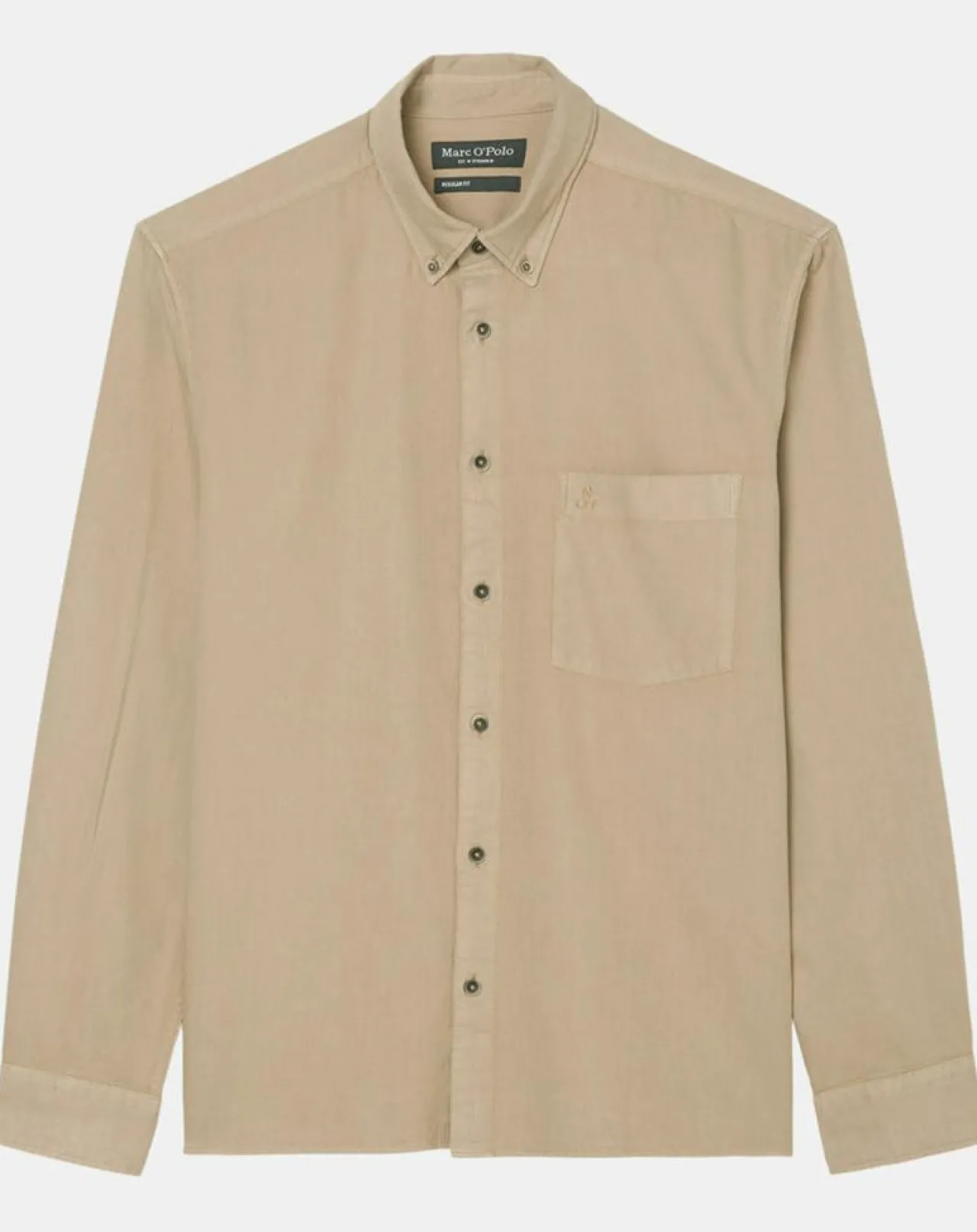 Toucher légèrement fluide et frais, col classique à pointes boutonnées, patte de boutonnage sur toute la longueur, manches longues à poignets, poche-poitrine ornée d’un petit logo brodé et base légèrement arrondie.