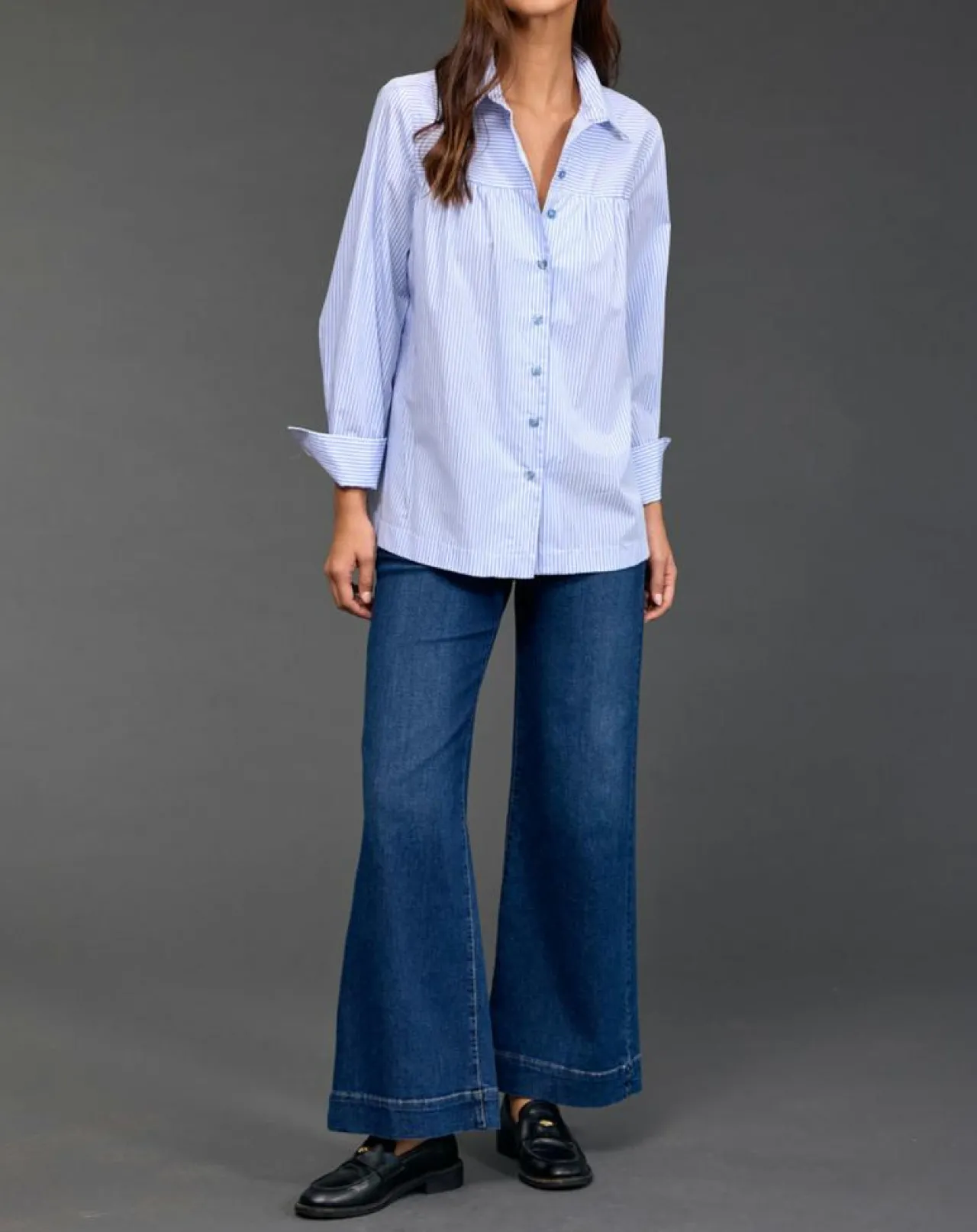 Col chemisier, boutonné devant, poignet fermé par un bouton