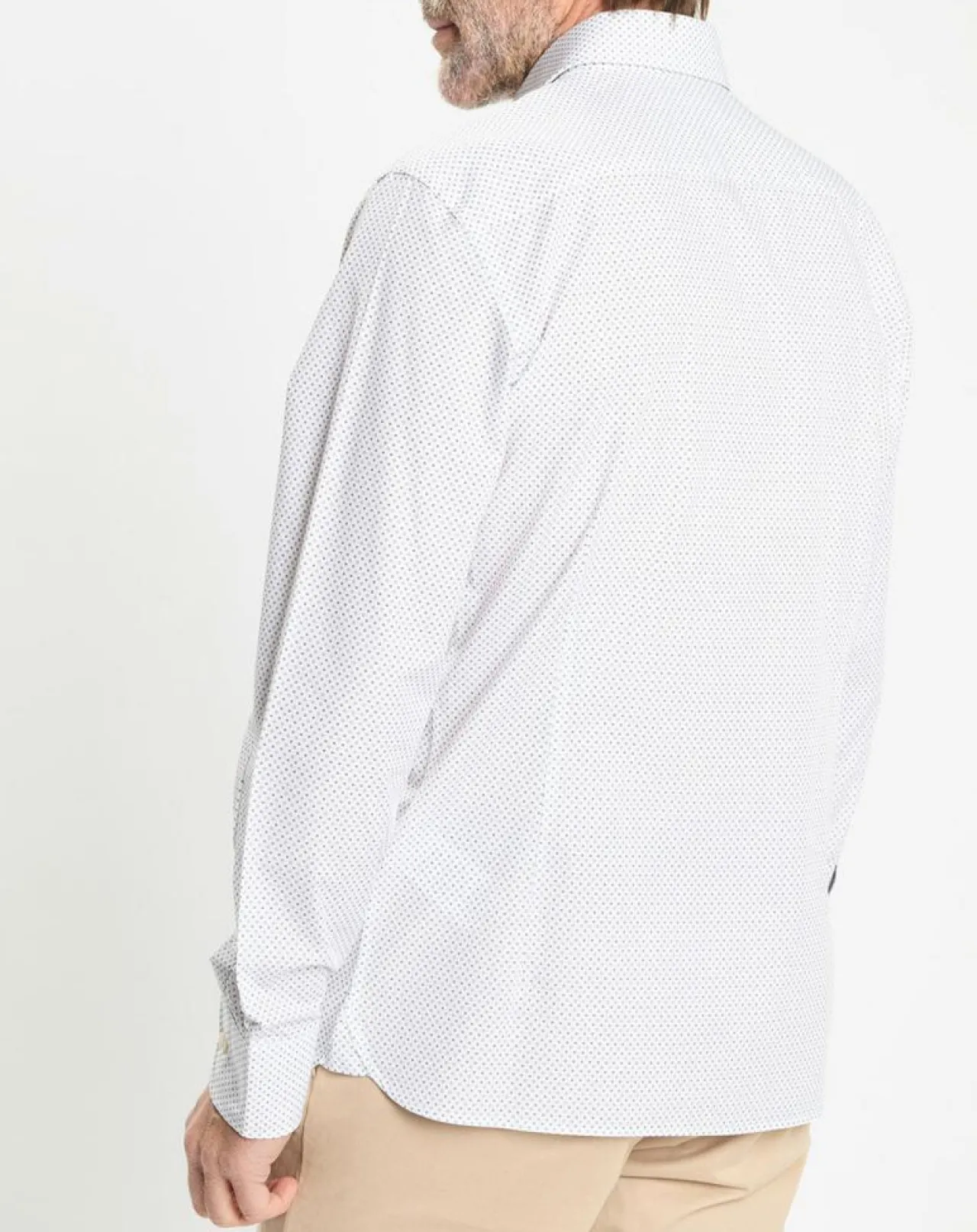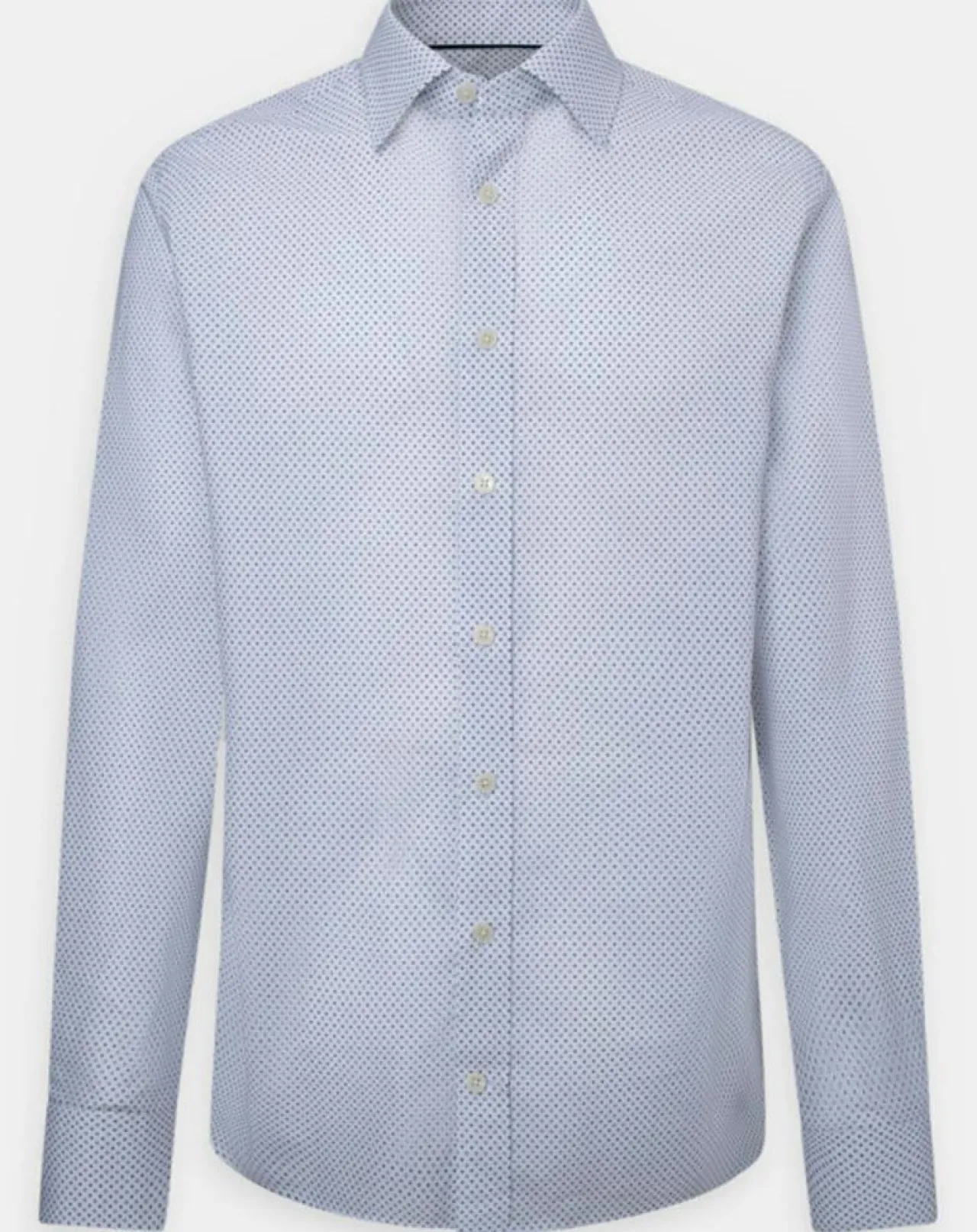 Cette chemise ajustée Hackett London en coton à imprimé motifs géométriques all-over, est munie d’un col italien, de manches longues, de poignets ronds à 1 bouton ajustable, d’une fermeture boutonnée et d’une base arrondie