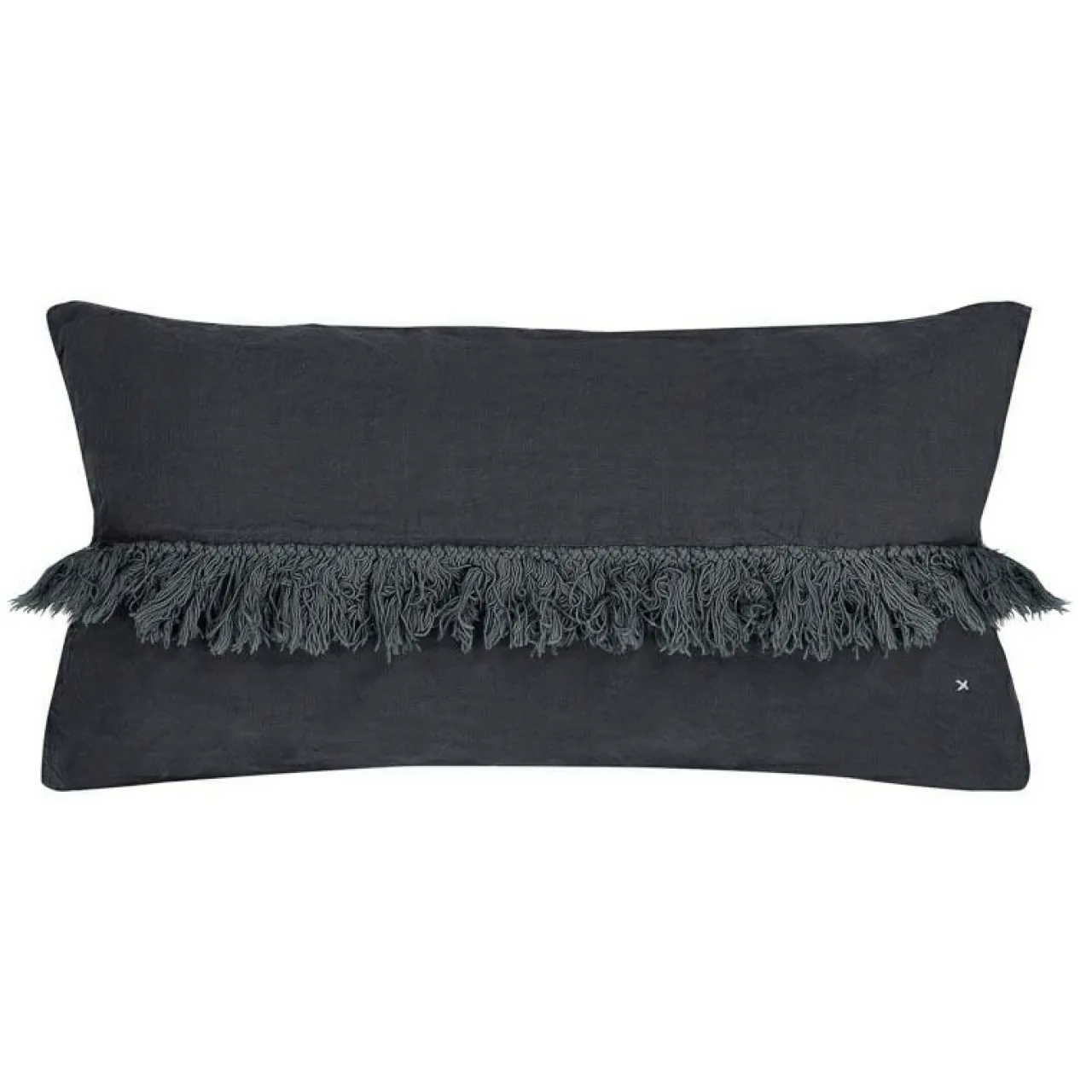Le coussin FOX Frangé, coloris Charbon, apporte une touche élégante et contemporaine à votre espace. Fabriqué en 100 % lin lavé, sa housse offre une texture douce et naturelle, parfaite pour un confort optimal. Ses finitions frangées et la croix brodée à l’angle ajoutent des détails raffinés et subtils, tandis que la fermeture à zip permet une utilisation pratique. Avec des dimensions de 30 x 60 cm, ce coussin s’intègre harmonieusement dans votre décoration, que ce soit sur un canapé, un fauteuil ou un lit. Fabriqué avec soin au Portugal, il est vendu avec sa garniture, pour un confort immédiat et une touche de style intemporel.