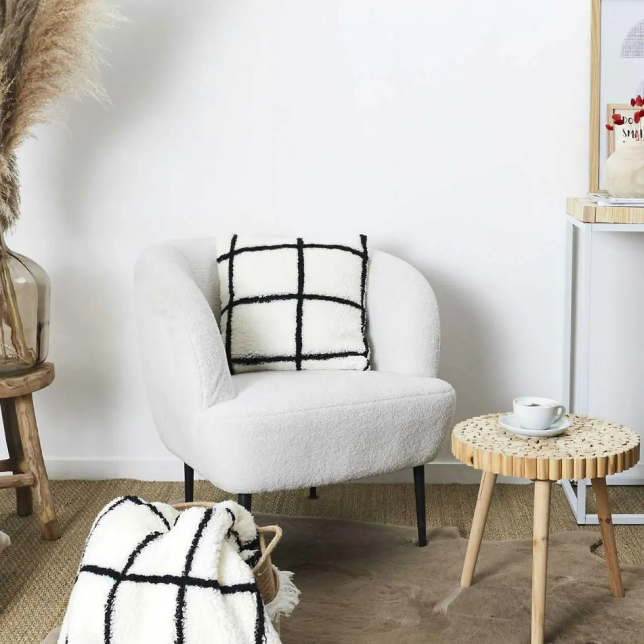Ce coussin en sherpa blanc apportera une note cocooning à votre intérieur