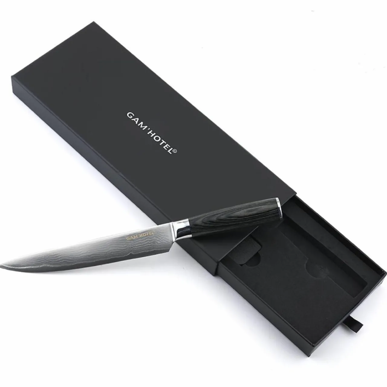 Le manche en lamelles de bois Pakka sont compressées à chaud avec de la résine, ce qui permet d’être très résistant et hygiénique
