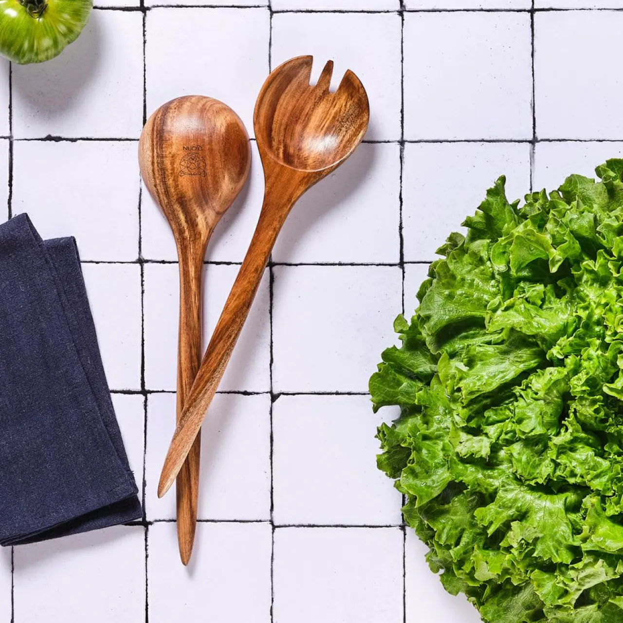 Fabriqués en bois dacacia certifié FSC, ces couverts valorisent un matériau naturel, résistant et durable, issu de forêts gérées de manière responsable