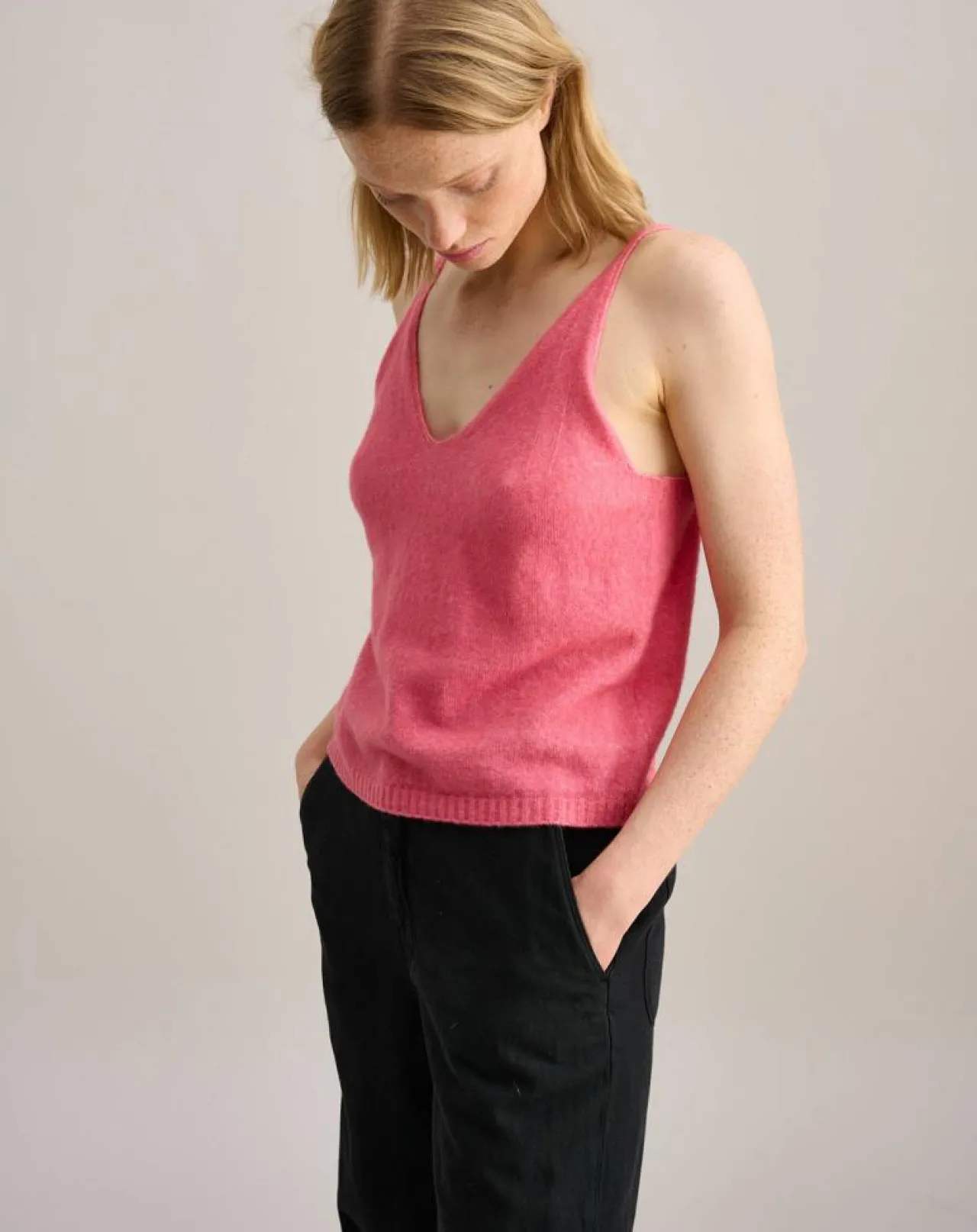 En laine et angora mélangés, ce débardeur tricoté présente une coupe ajustée avec une encolure en V et des bretelles spaghetti
