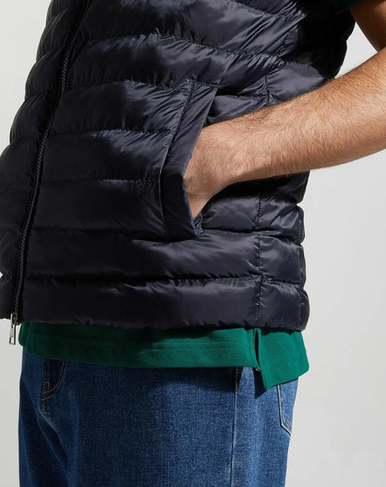 Cette doudoune sans manches Gant présente un col banane, une fermeture zippée bidirectionnelle, la signature floquée sur la poitrine ainsi que 2 poches boutonnées.