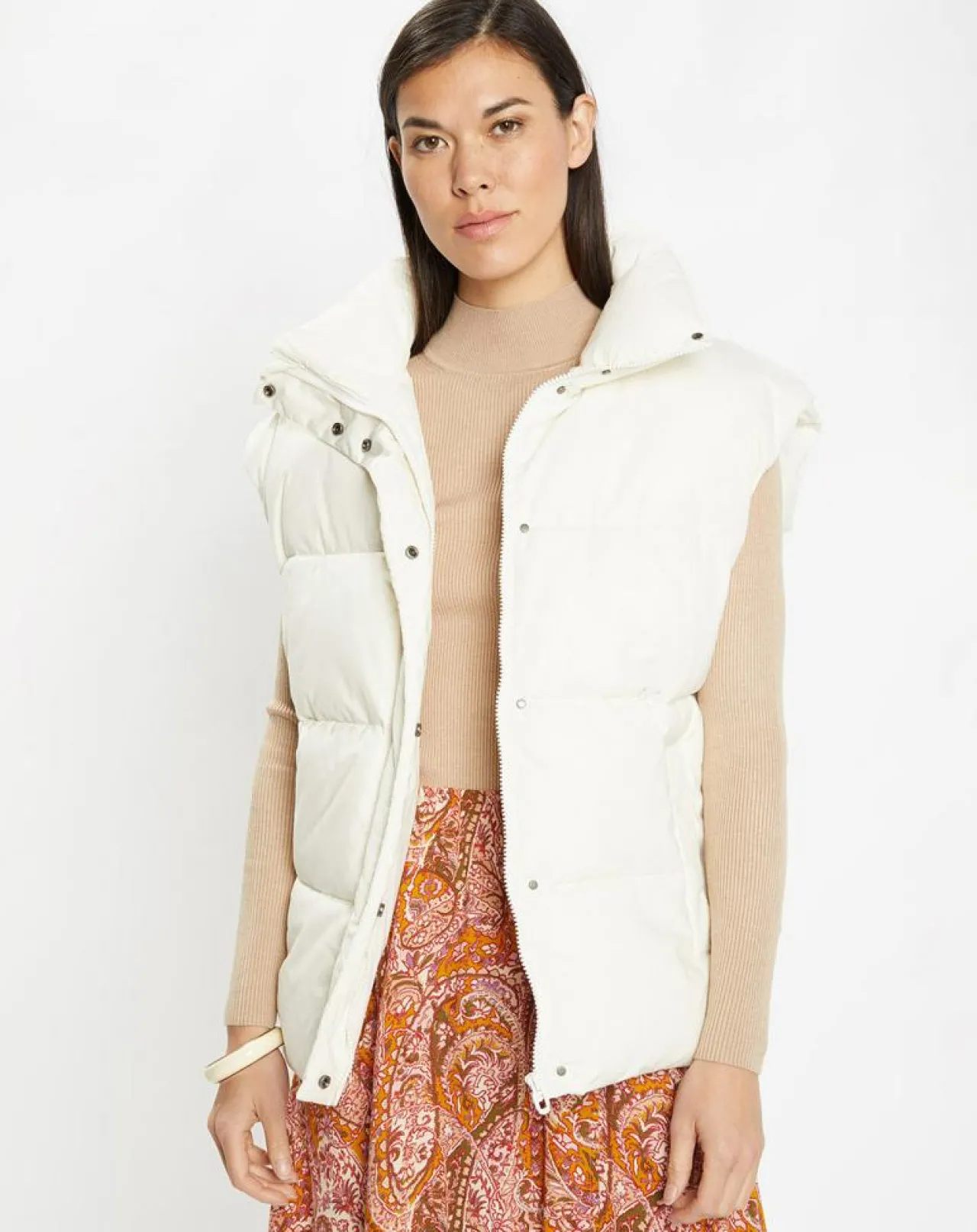 Cette doudoune sans manches Galeries Lafayette est munie d’un col montant, d’une fermeture zippée sous patte à boutons pression et de poches.