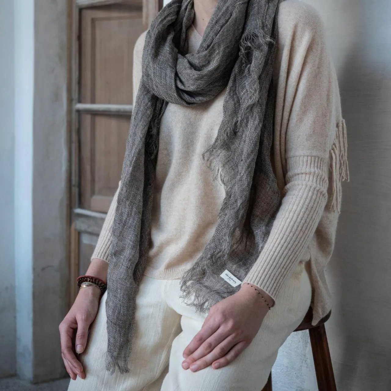 Produit versatile : peut s’utiliser également en étole ou se transforme en plaid léger