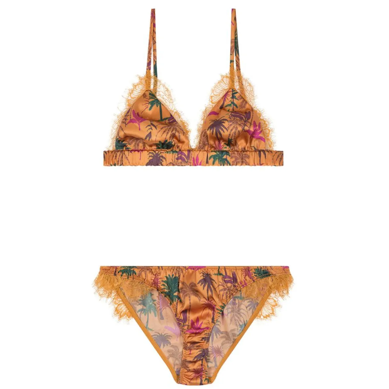 On craque pour cette ensemble de lingerie en soie stretch imprimée de palmiers