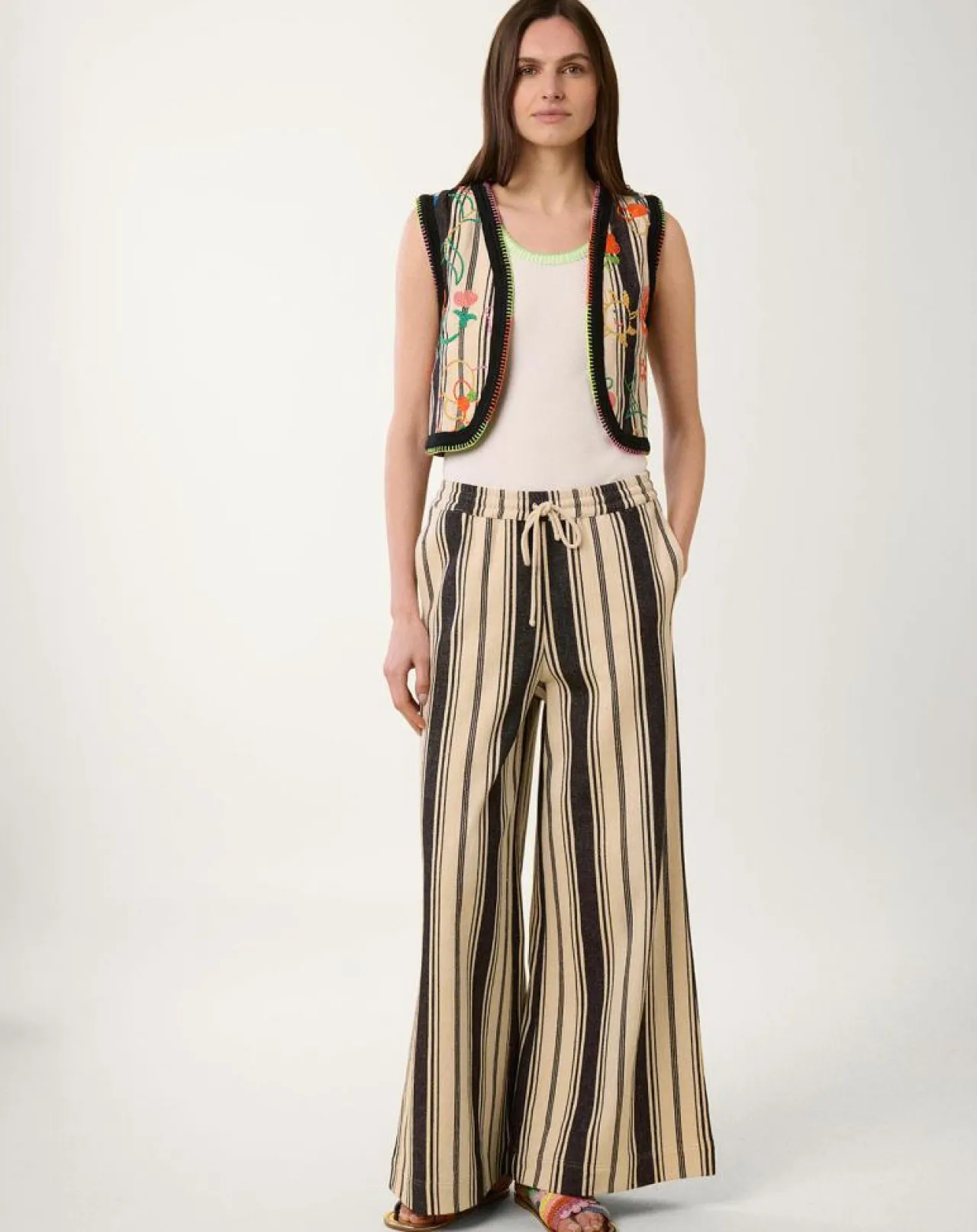 Gilet brodé sans manches à motifs floraux