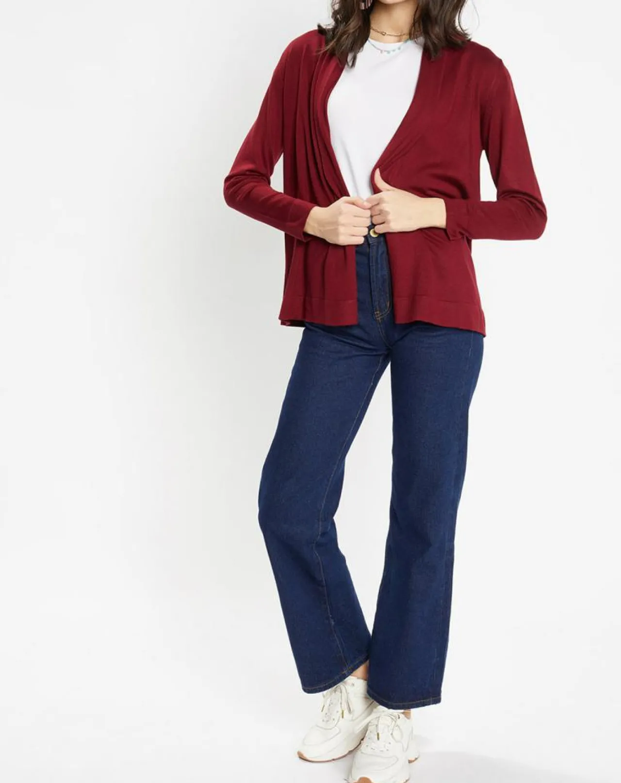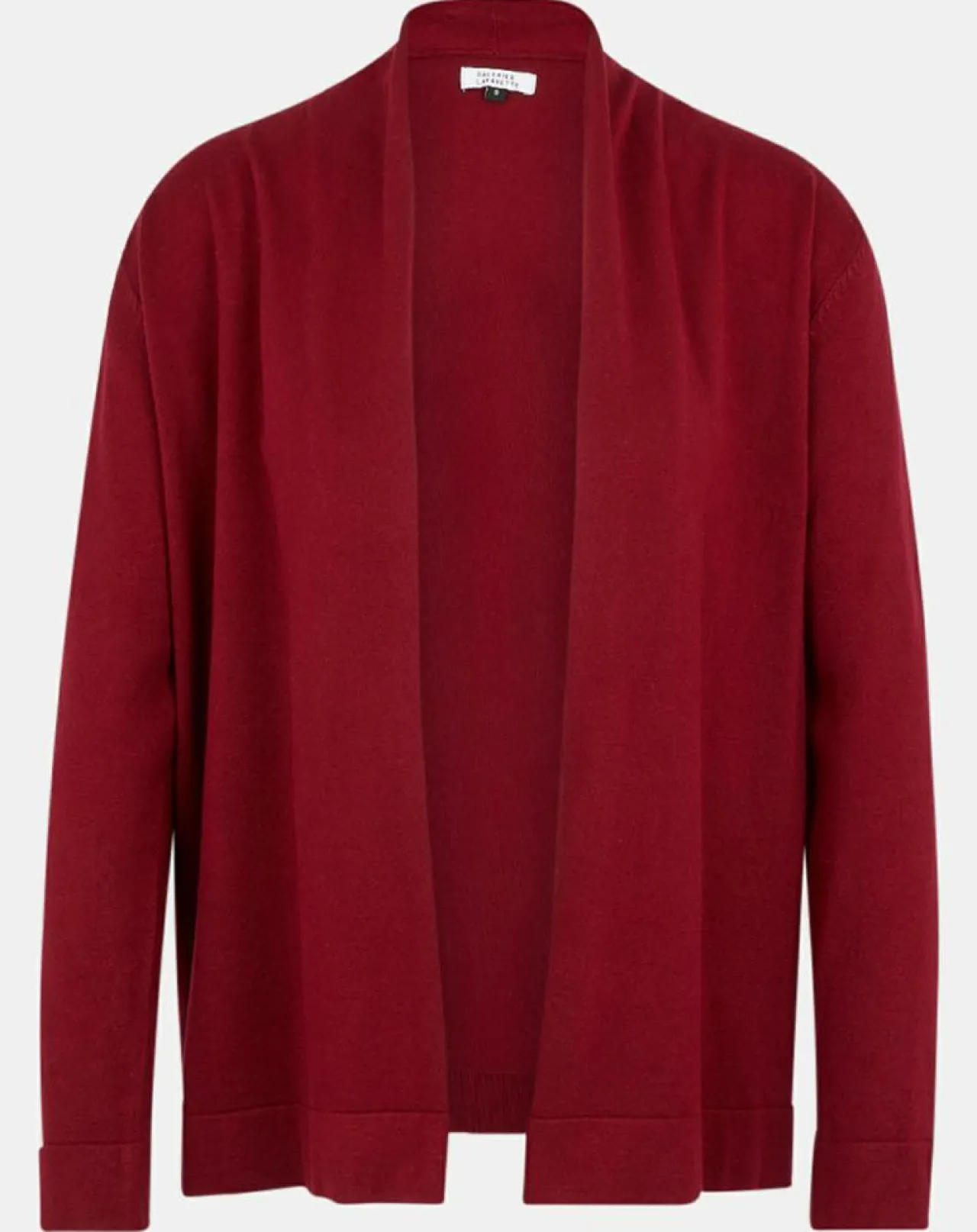 Ce gilet tube court Galeries Lafayette en maille fine, se pare d’un col châle, de manches longues et de finitions côtelées.