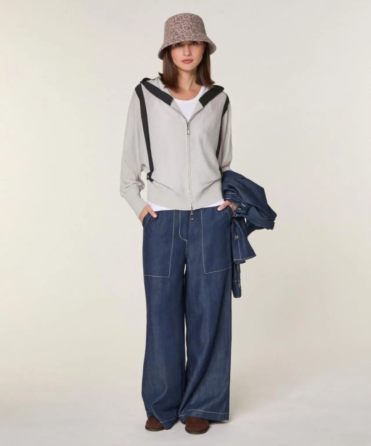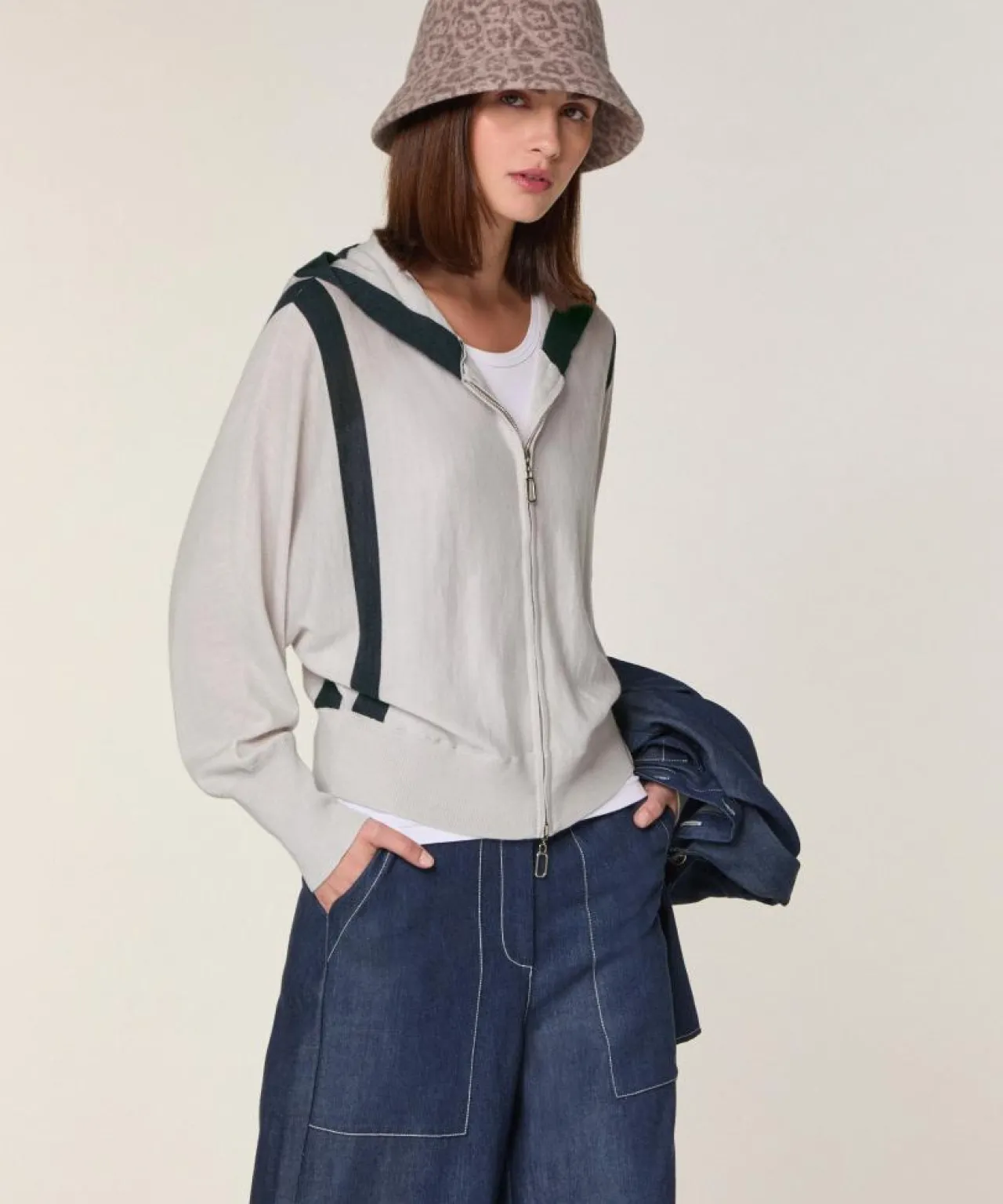 Gilet Ghislaine en Laine Bi-Couleur blanc