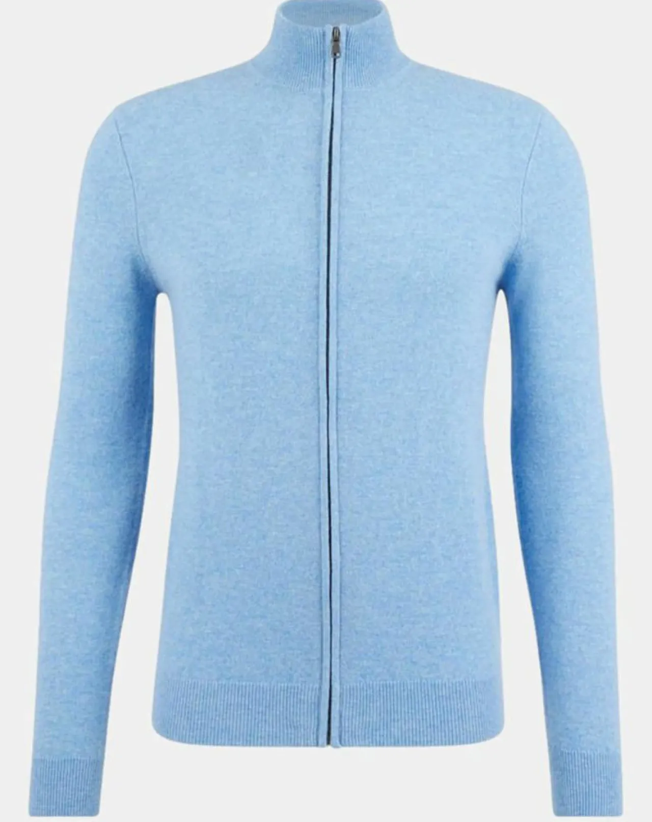 Ce gilet droit Galeries Lafayette en cachemire est doté d’un col montant, de manches longues, d’une fermeture à glissière et de finitions côtelées.