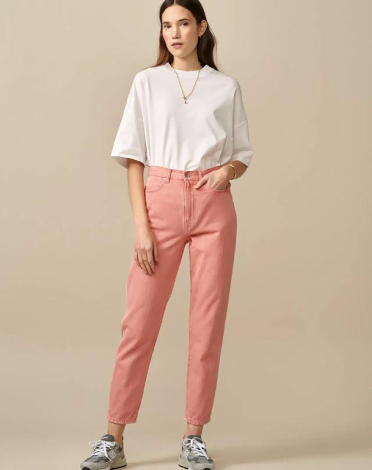 Taille haute, coupe décontractée et légèrement évasée le tout dans un denim délibérément rose bonbon et juste un peu délavé pour une touche vintage et girly qu’on adore