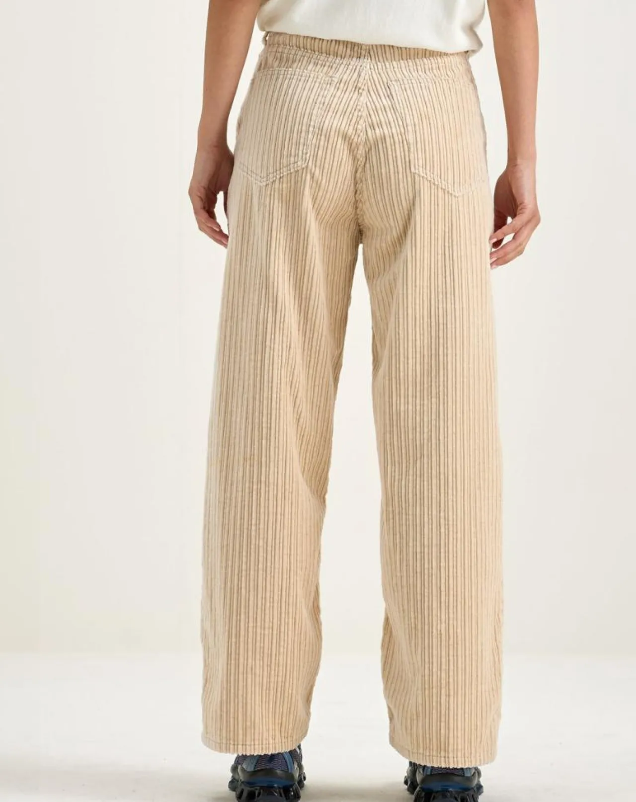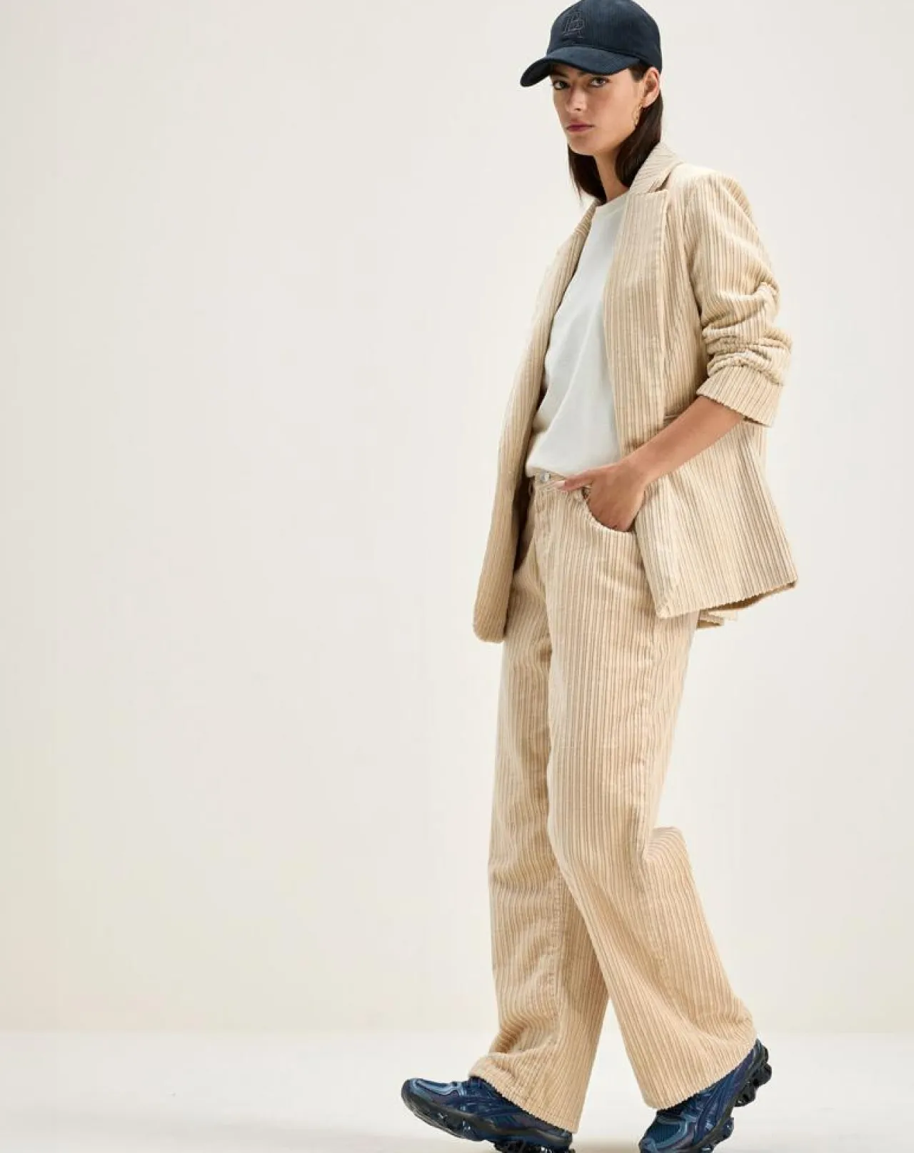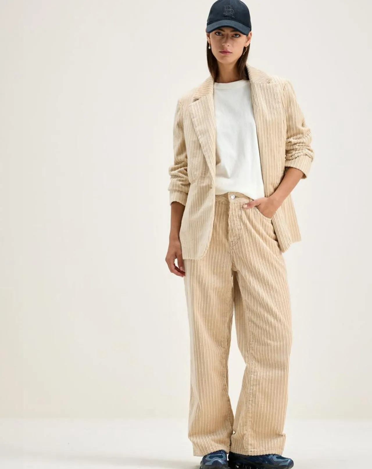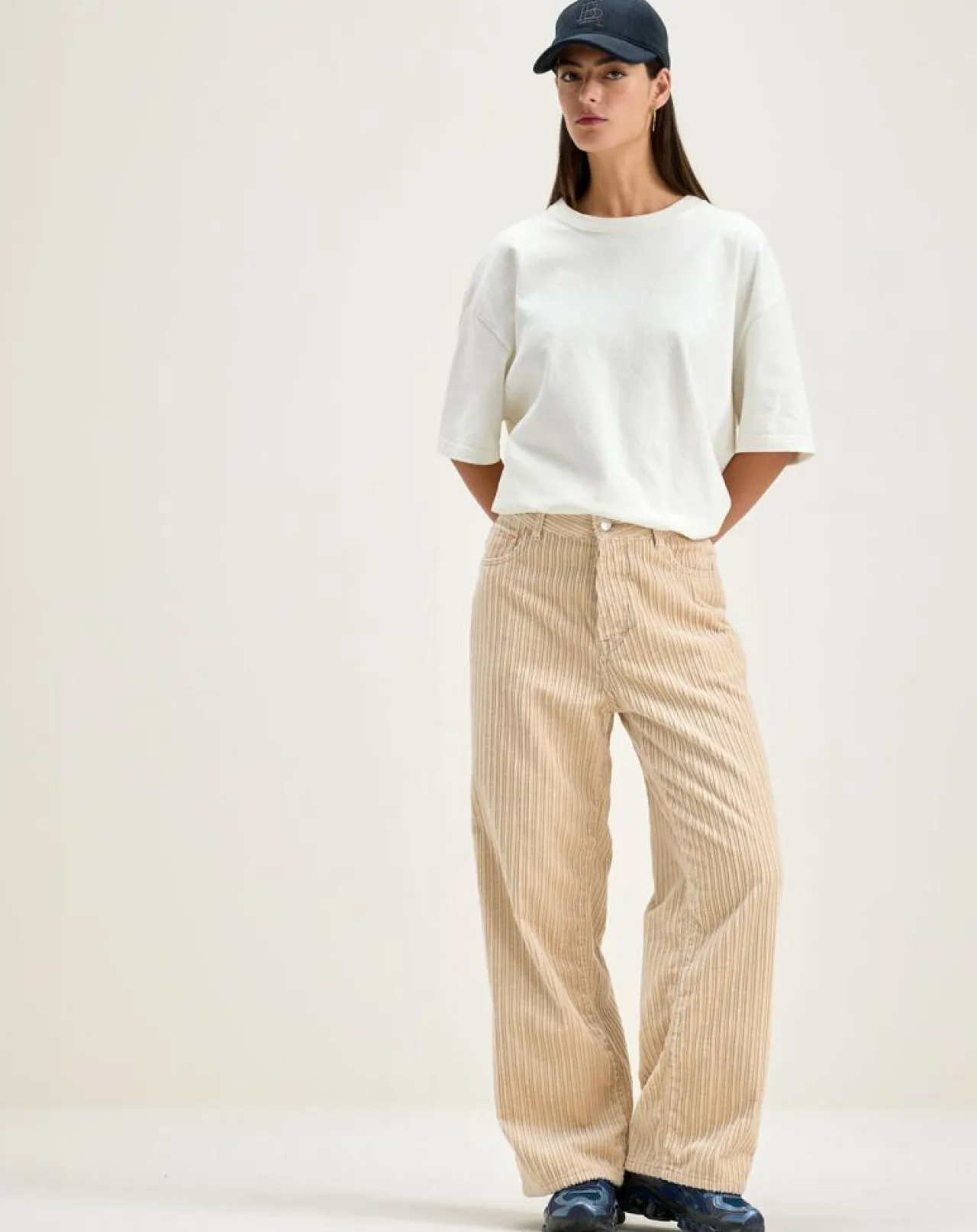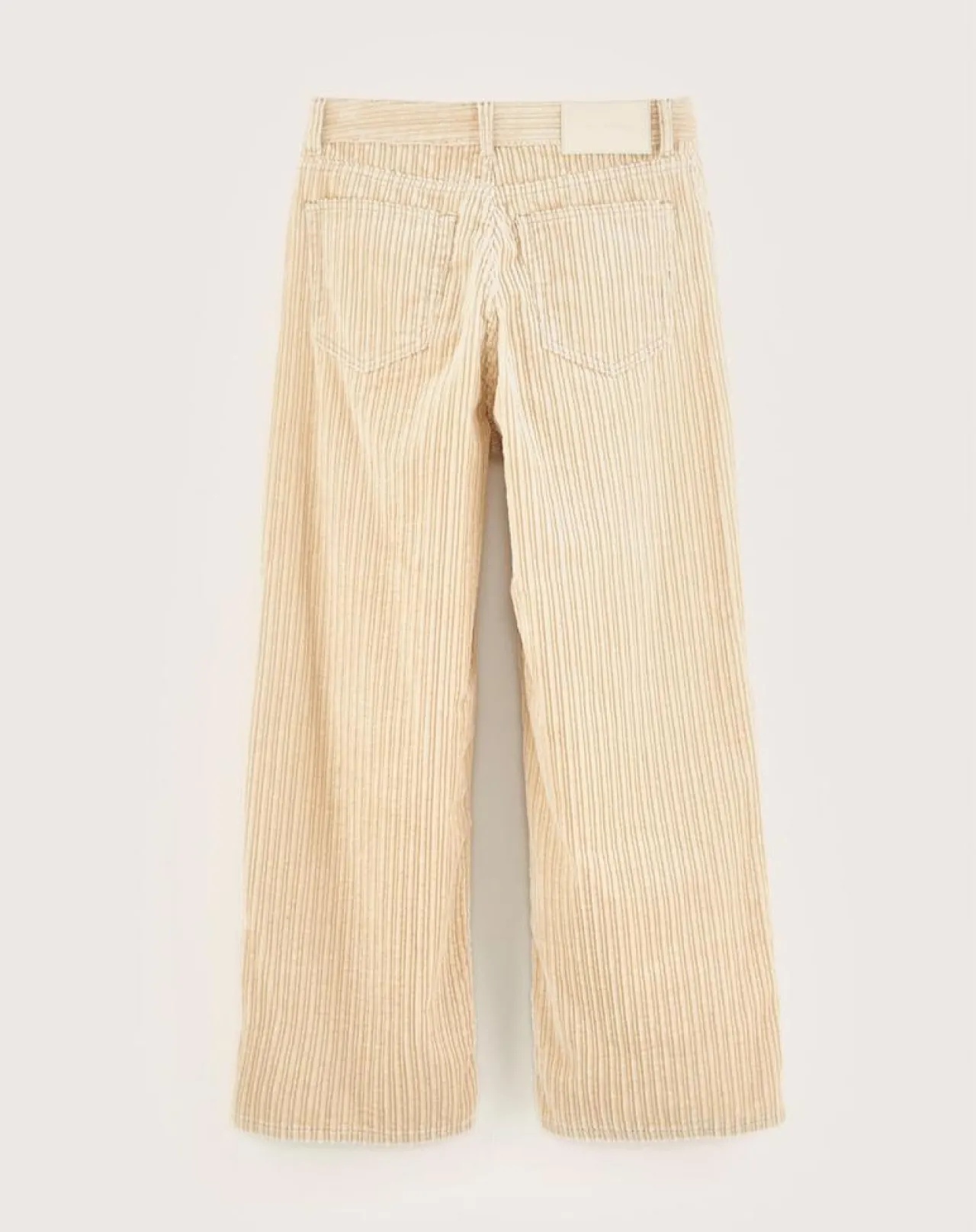 Jean taille normale et jambe large, fabriqué en velours côtelé écru et finition avec effet marbré