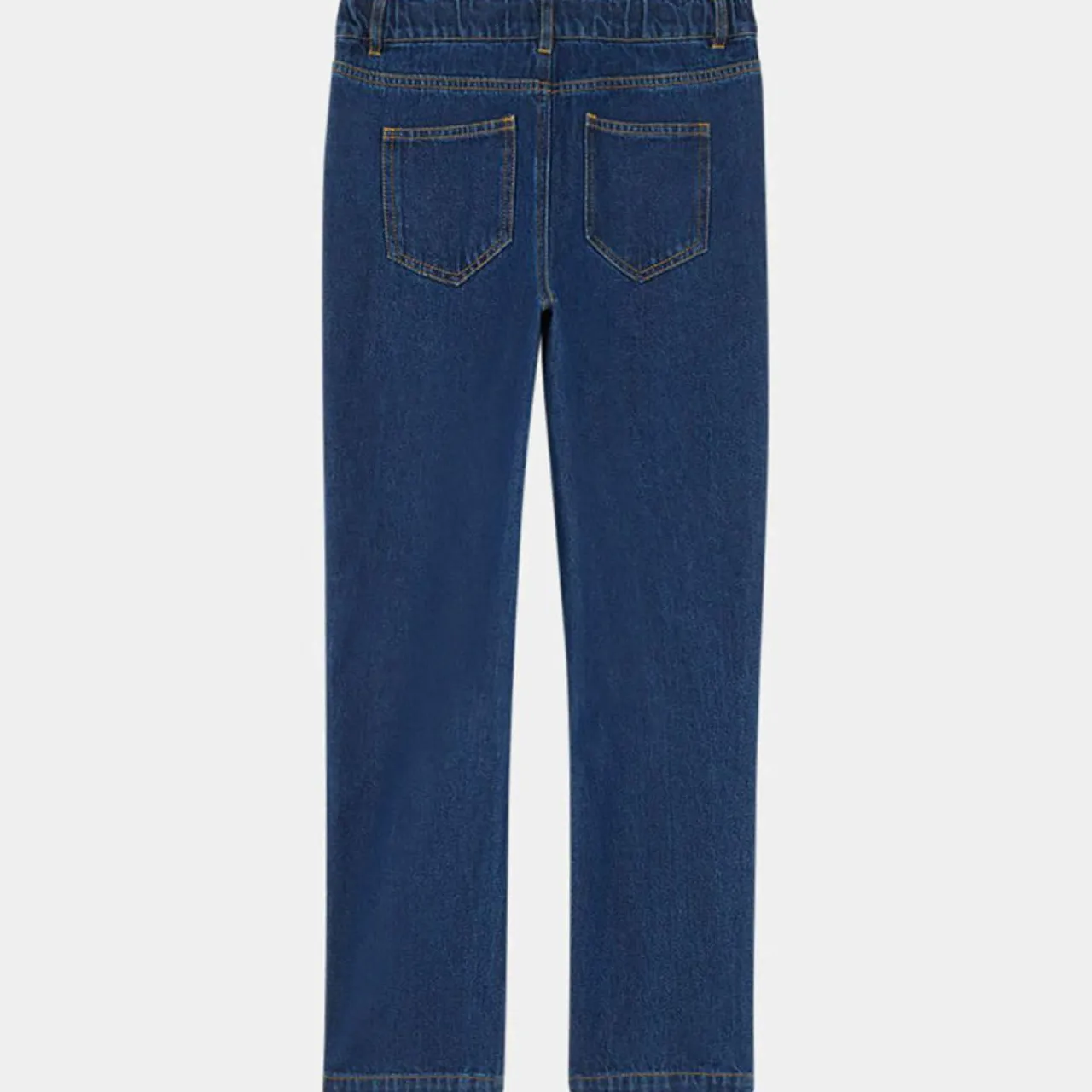 Ce jean mom Galeries Lafayette confectionné en coton biologique, présente une taille haute boutonnée ajustable par boutons intérieurs élastiqués, une fermeture zippée, 2 poches cavalières et 2 poches plaquées.