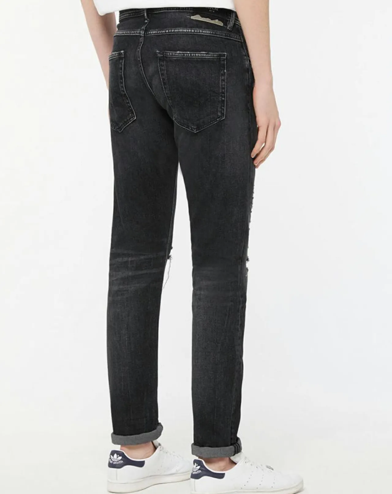 Ce jean légèrement ajusté Replay composé de coton stretch délavé avec abrasions, se pare de 3 poches sur l’avant, de 2 poches sur l’arrière, d’une fermeture boutonnée et de passants pour ceinture.
