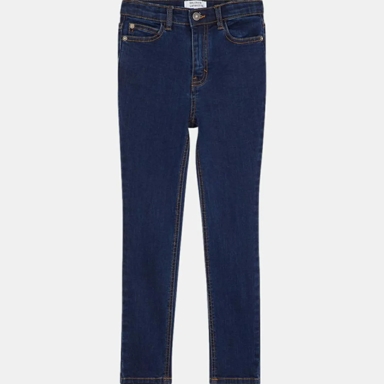 Ce jean très ajusté Galeries Lafayette composé de coton est muni d’une taille haute, de 2 poches cavalières et d’une poche ticket à l’avant, de 2 poches plates ainsi que d’un empiècement surmonté d’un message à l’arrière et d’une fermeture à glissière rehaussée d’un bouton métallique.