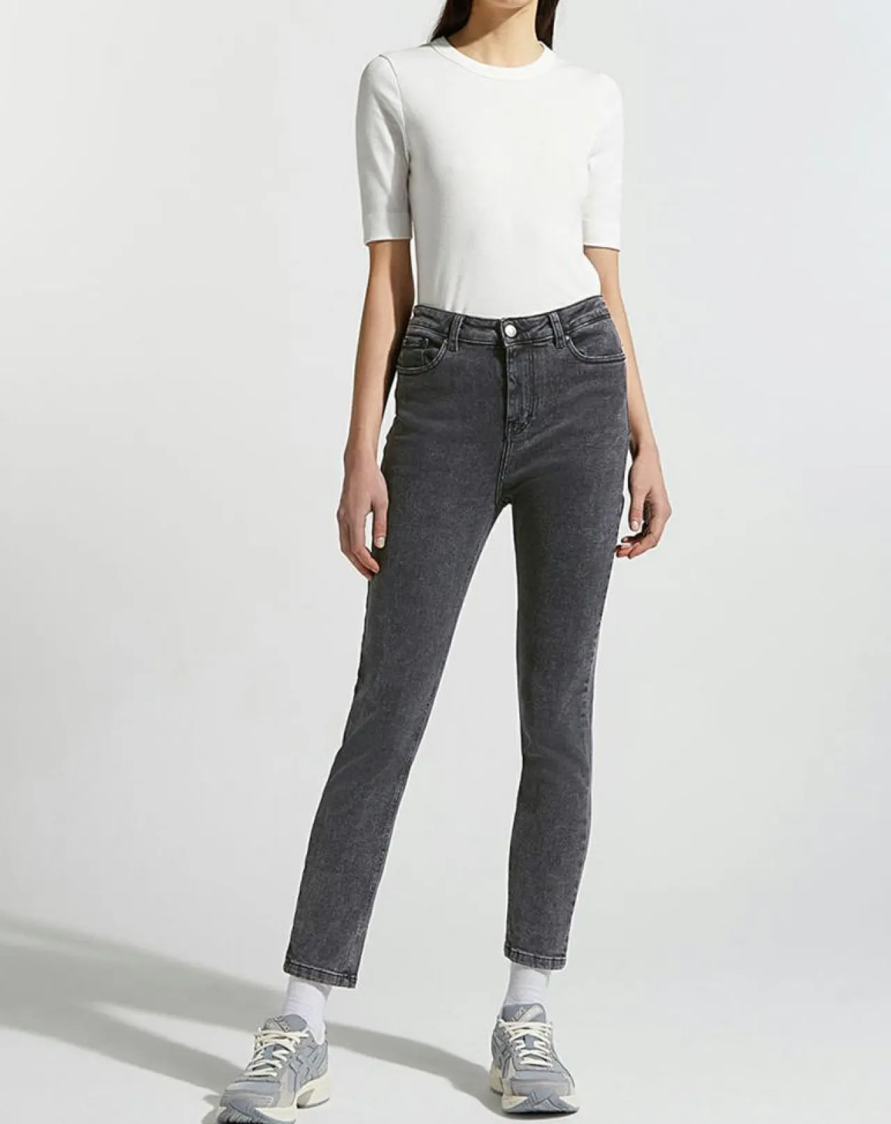 Ce jean ajusté Galeries Lafayette composé de coton organique est muni d’une fermeture zippée rehaussée d’un bouton métallique, de 2 poches cavalières et d’une poche ticket ainsi que de 2 poches plates au dos.