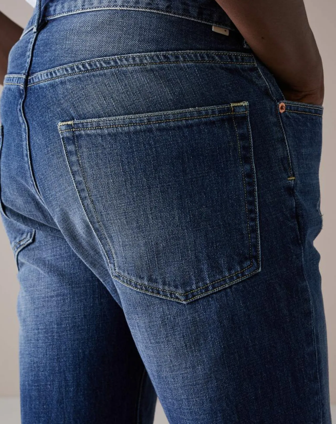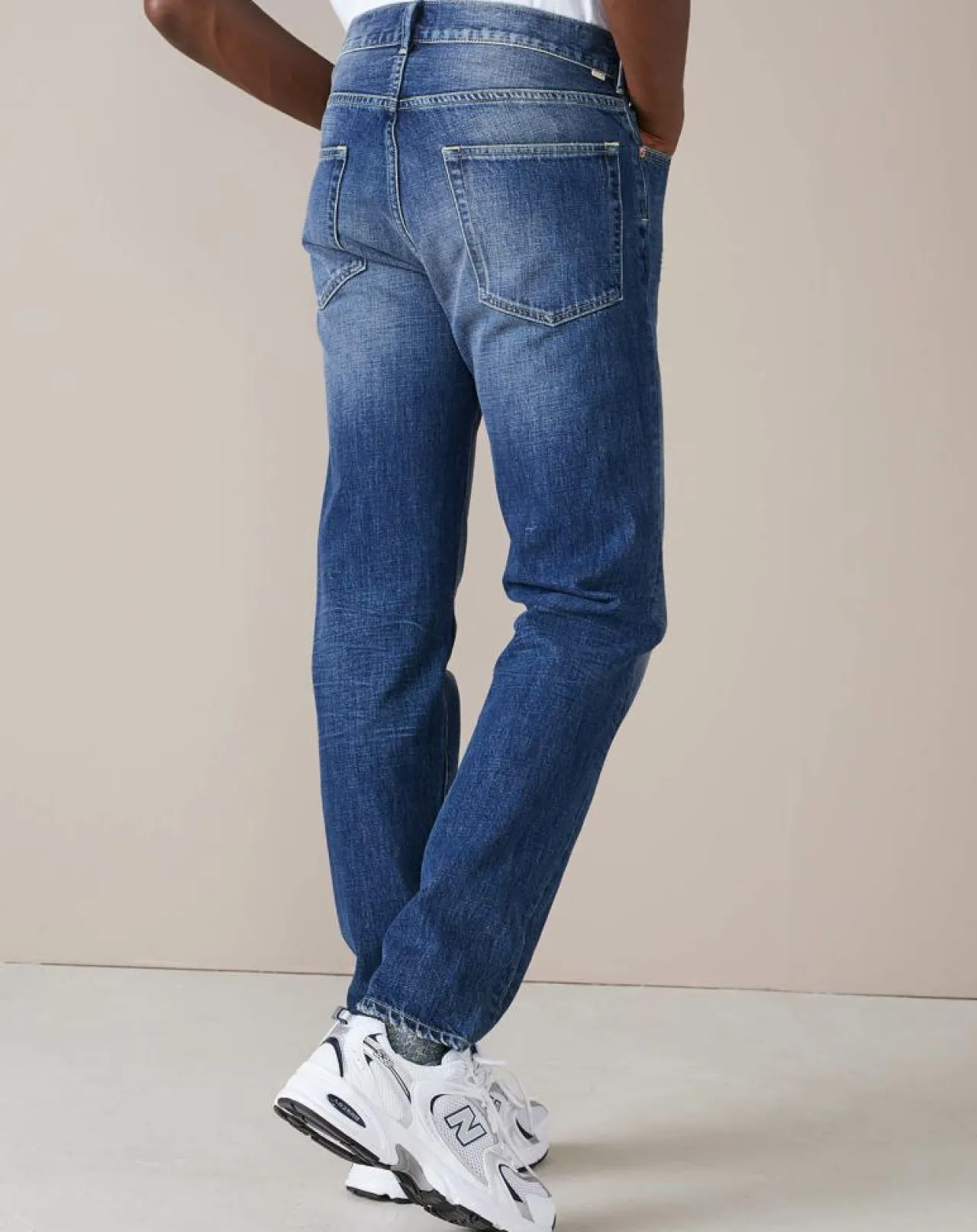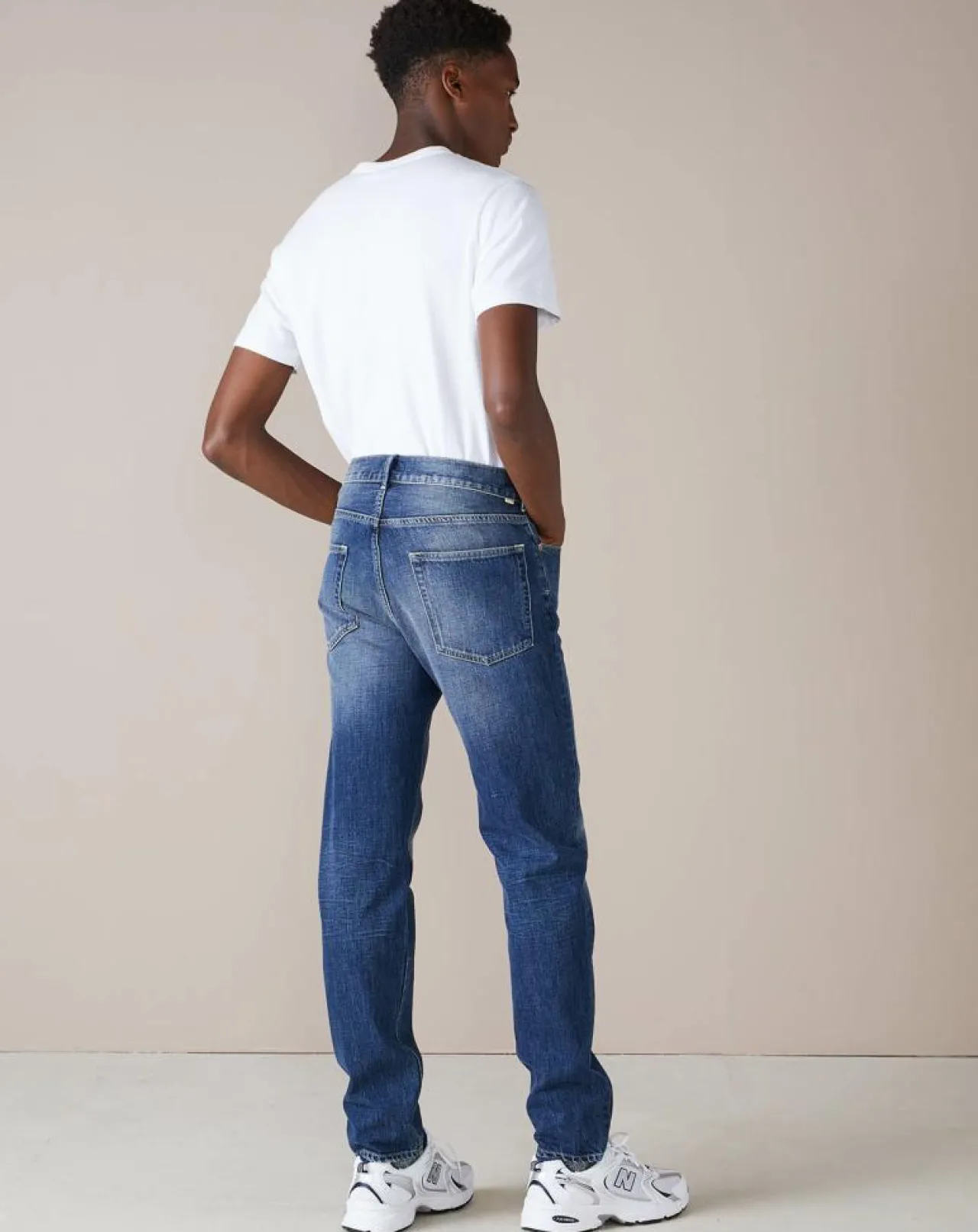 Slim sans être trop serré, taille plus haute sans aller jusqu’au bout, avec des jambes fuselées