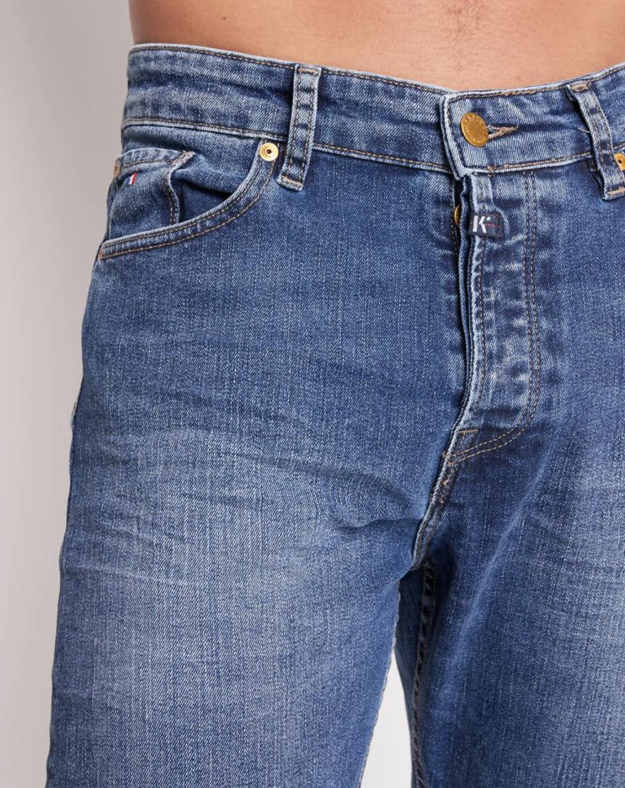 Ce jean ajusté Kaporal Jeans composé de coton stretch au délavage stone washed, se pare de 3 poches sur l’avant, de 2 poches plaquées sur l’arrière, d’une fermeture boutonnée siglée, de passants pour ceinture et de surpiqûres contrastantes.